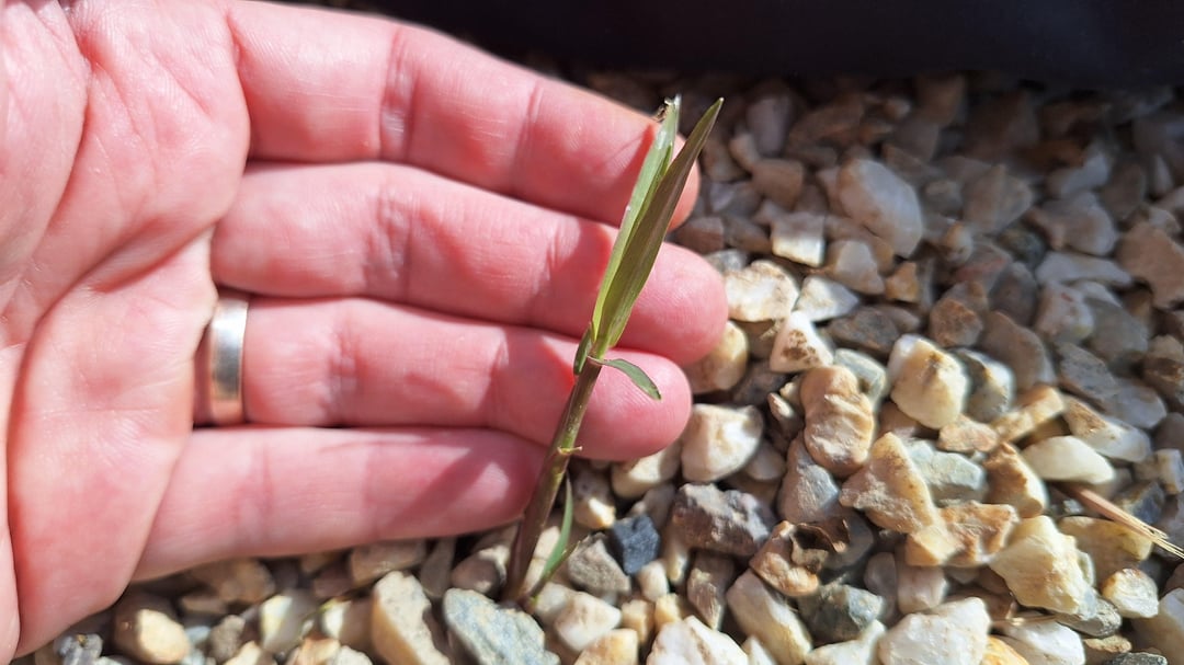 1 Woche nach der Installation habe ich an einem bestimmten Teil der Auffahrt (nach Süden ausgerichtet) Nachwuchs, der die Plane durchbohrt hat und durch den Kies dringt. siehe Foto
