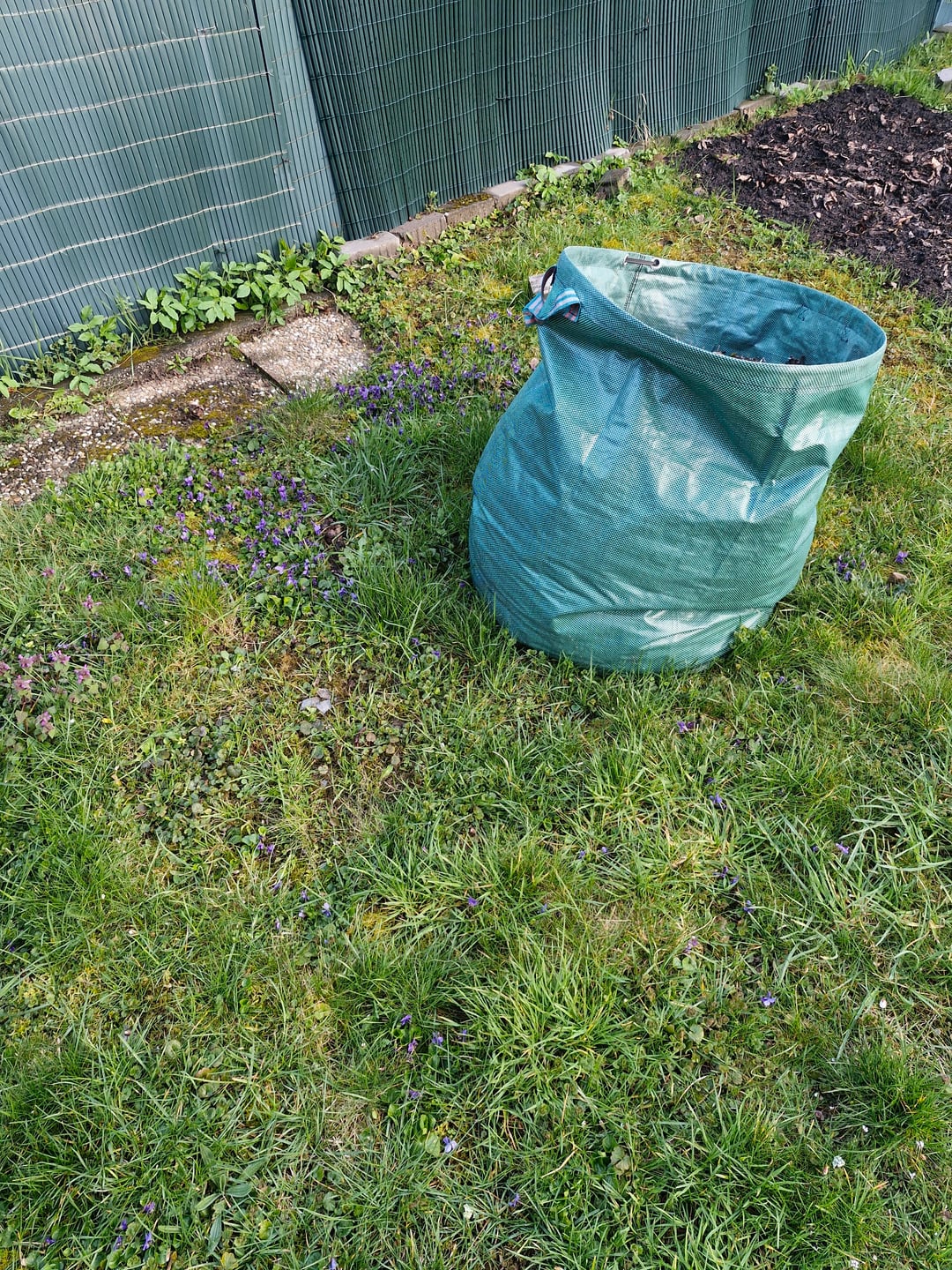 vor vier Wochen lag noch sehr nasser Laub auf der Fläche, hab diese dann entsorgt entweder im Kompost oder als No-Dig Beet-Methode mit Pappe auf einer weiteren Fläche, wo ich in Zukunft ein Blumenbeet errichten möchte.
