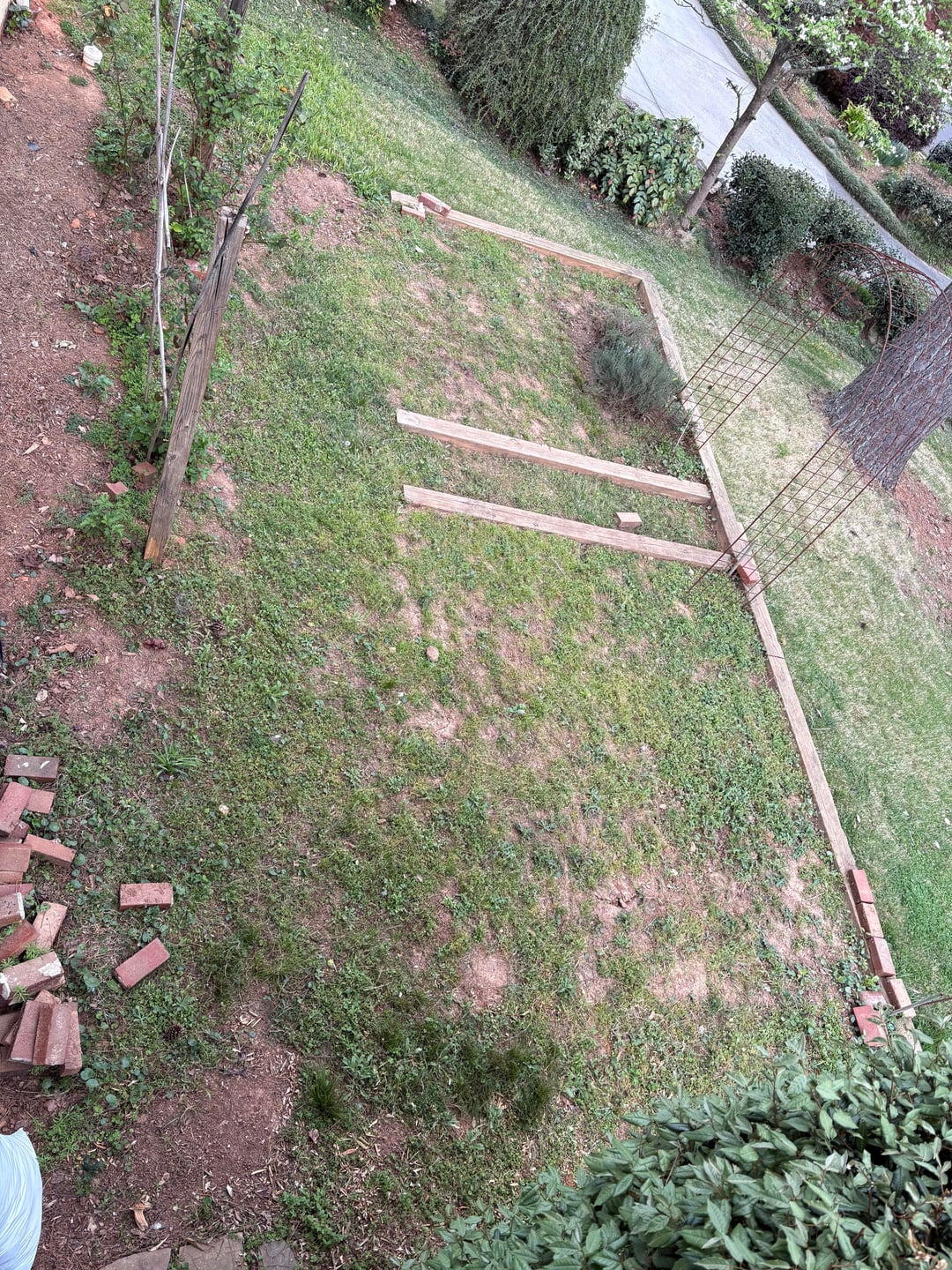 Sie können sehen, dass dort, wo die kleinen Stufen und der Bogen sind, ein Weg sein soll, und dass es auch einen Weg vor den Brombeeren geben soll.