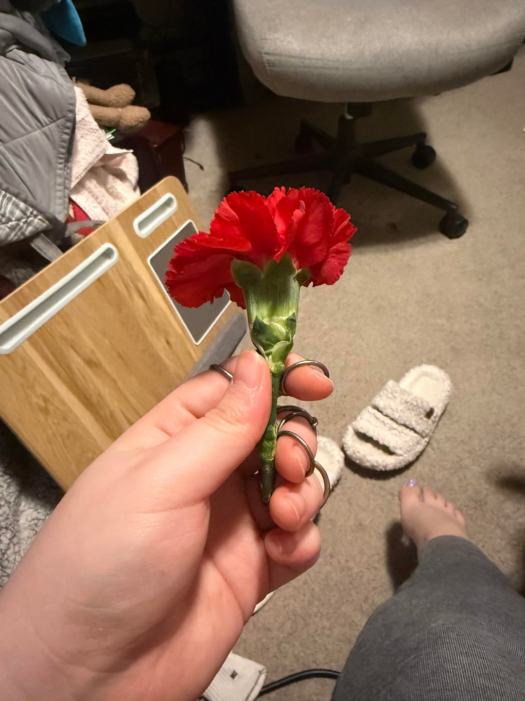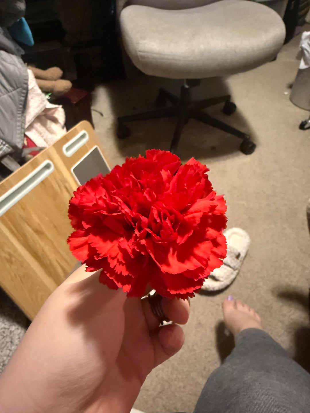 Meine Tante ist letzte Nacht gestorben und mein einziger Hinweis darauf, welche Blumen sie mag, ist dieser Ausschnitt einer Blume, die sie in ihrem Zimmer aufbewahrt hat. Ich möchte vielleicht welche zur Beerdigung mitbringen, bin mir aber nicht sicher, was für eine Blume das ist. Ich weiß nicht, ob das die richtige Blume ist, aber wenn jemand sie identifizieren könnte, wäre ich dankbar