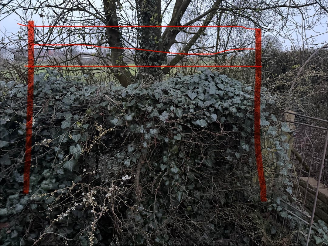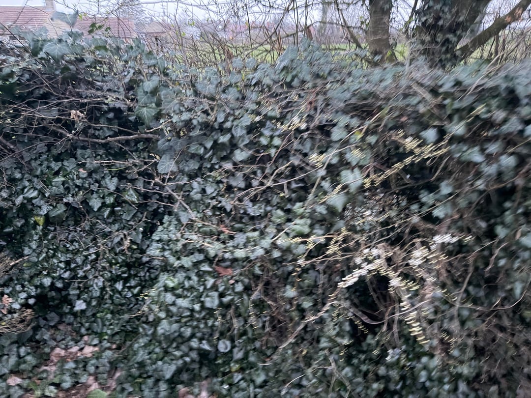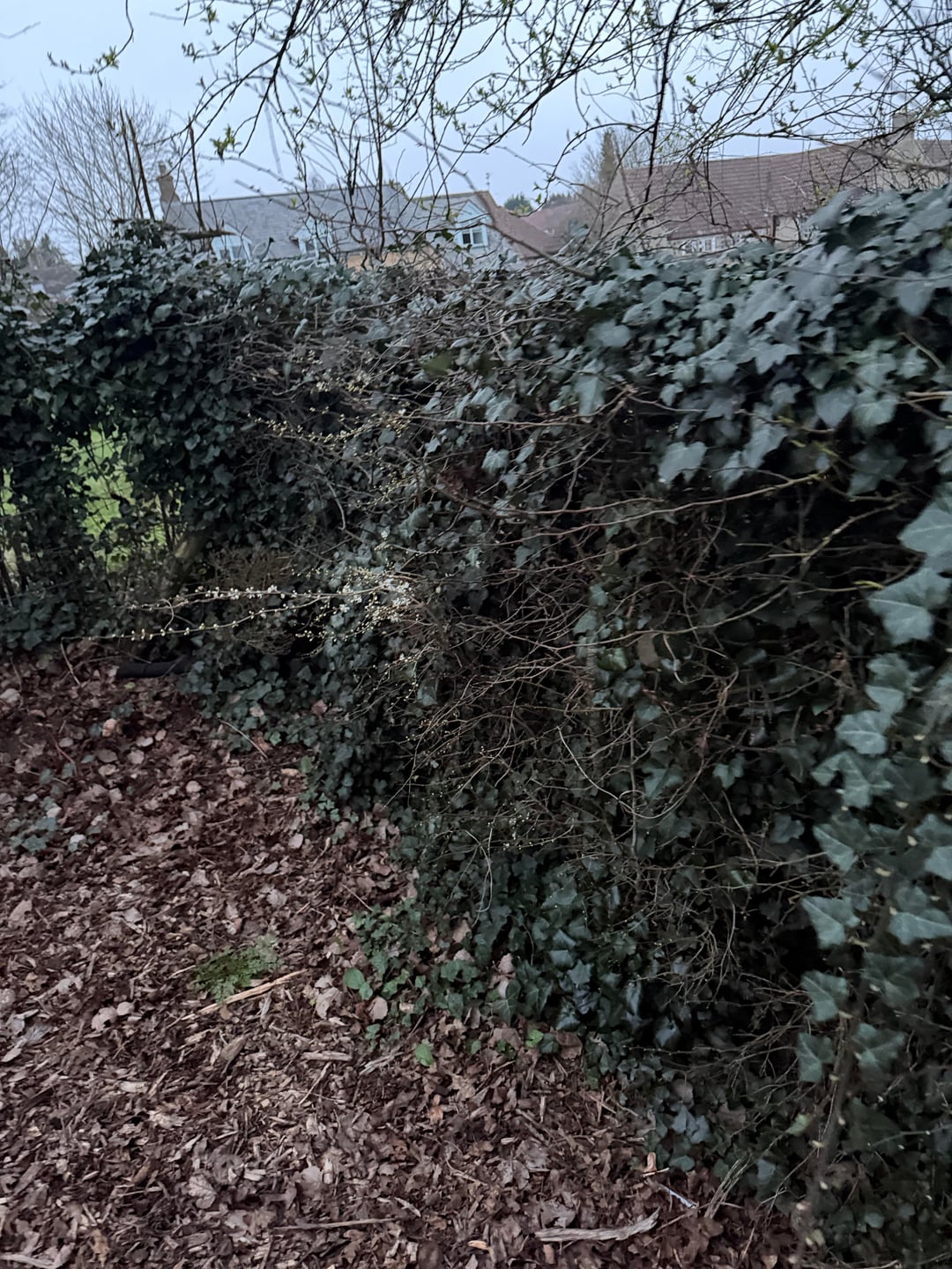 Ich hoffe, jemand hat hier ein paar Ideen für mich – hinten im Garten habe ich diese eher mit Efeu bedeckte Hecke, ich möchte hier das ganze Jahr über etwas mehr Höhe/Sichtschutz schaffen. Ich habe mich gefragt, ob es sinnvoll wäre, den Efeu hochzuzüchten, um die Höhe zu erhöhen, wenn man Pfähle in den Boden (innerhalb der Hecke) stecken und dann Drähte zwischen ihnen verlegen würde (gemäß dem groben Bild!). Appreciate könnte den Weißdorn entfernen und hoffen, dass er wächst, aber ehrlich gesagt ist er in einem schrecklichen Zustand (voller Schatten) und sucht das ganze Jahr über Schutz. Gedanken und Ideen werden sehr geschätzt