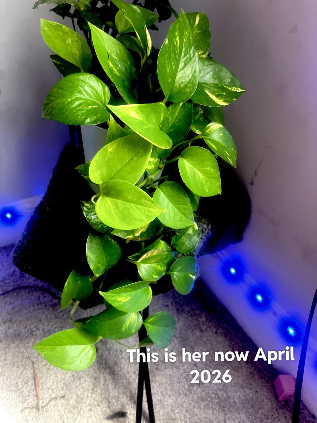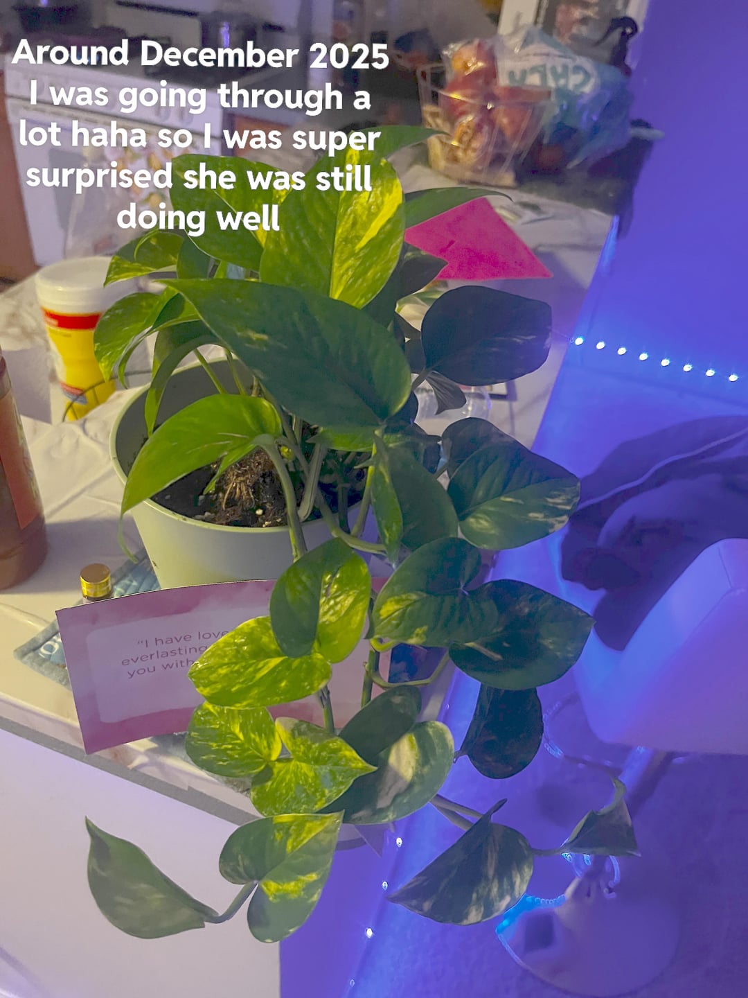 April 2025 war der Monat, in dem ich nach meiner Obdachlosigkeit untergebracht wurde, also kaufte ich schließlich ein paar Pflanzen. Die Pothos ist die Gewinnerin, weil sie viele meiner anderen Pflanzen überlebt hat und unterwegs abgestorben ist. Sie hat zunächst bei mir angefangen und einen langen Weg zurückgelegt. Ich habe jetzt insgesamt noch 4 Pflanzen übrig.