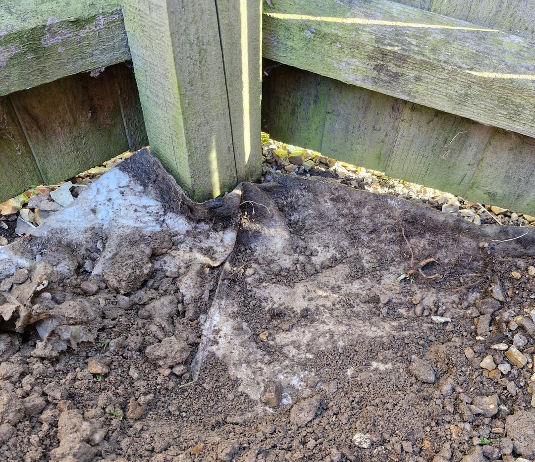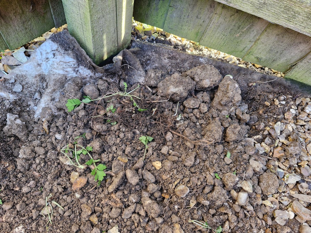 Ich habe vor kurzem zum ersten Mal ein Haus gekauft. Es gibt einen Außenbereich von 5m x 15m, der um 2006/2007 mit Schindeln verlegt wurde. Unter den Dachschindeln befindet sich ein ~3" Schicht aus etwas, das wie eine Mischung aus Steinen und Schotter aussieht. Darunter befindet sich eine Bodenplane und was scheint darunter Lehm zu sein? Ich habe mich noch nie mit Schindeln oder Bodenplanen auf irgendeinem Grundstück beschäftigt, in dem ich zuvor gelebt habe, und wie Sie auf dem ersten Bild sehen können, trägt es nicht dazu bei, das Durchwachsen von Unkraut zu verhindern.