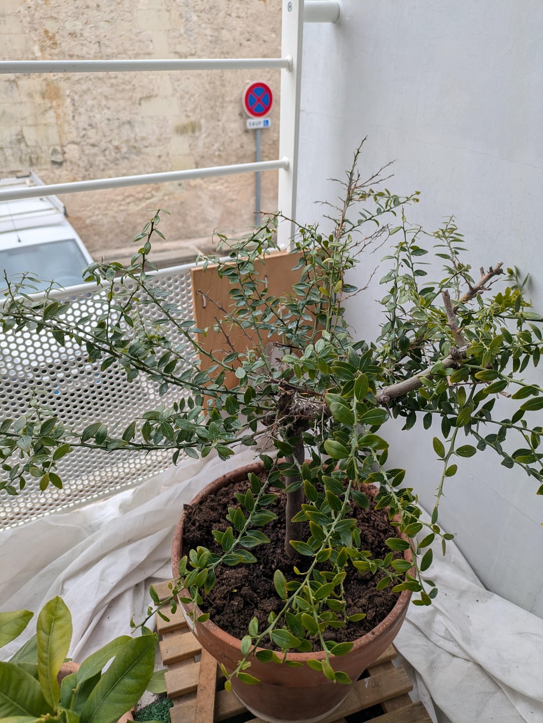 Ich habe eine Mischung aus Heideerde (1/3) und Zitruserde (2/3) hergestellt. Versuchen, einen sauren pH-Wert zu haben. Um stehendes Wasser zu vermeiden, legte ich eine etwa 2 cm dicke Tonkugel auf und wartete, bis die Erde getrocknet war, bevor ich sie erneut bewässerte.