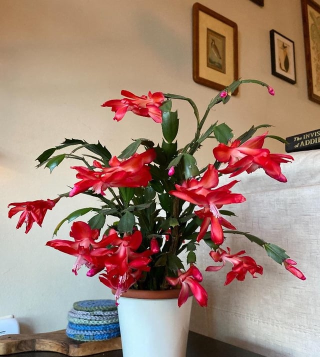 Mein süßer Weihnachtskaktus hat dieses Jahr endlich für mich geblüht! Das dritte Bild ist etwas mehr als drei Jahre her, als ich sie nach Hause brachte <3