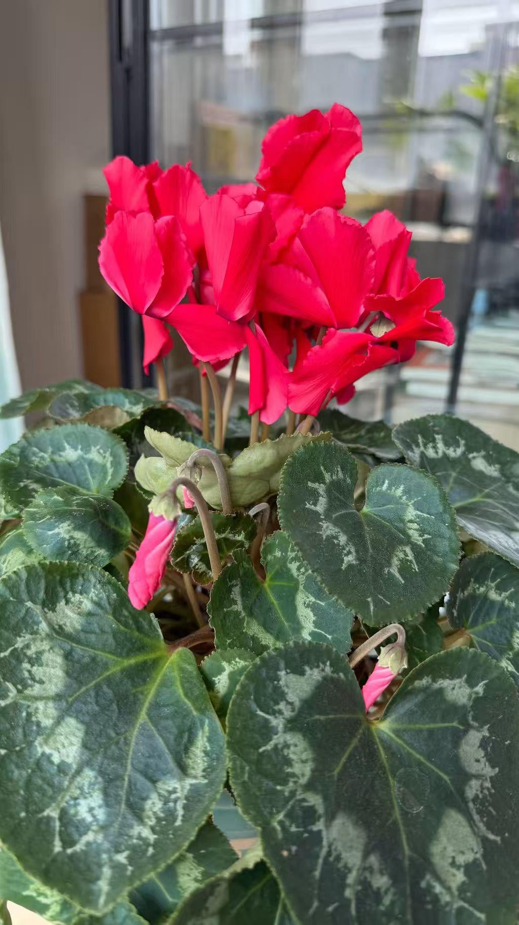 Mein Alpenveilchen steht endlich in voller Blüte! 🌹 Ich bin besessen von der atemberaubenden silbernen Marmorierung auf seinen herzförmigen Blättern. Es ist wie ein natürliches Kunstwerk. Das Laub ist genauso wunderschön wie die Blumen. Woran erinnern Sie die Blattmuster?