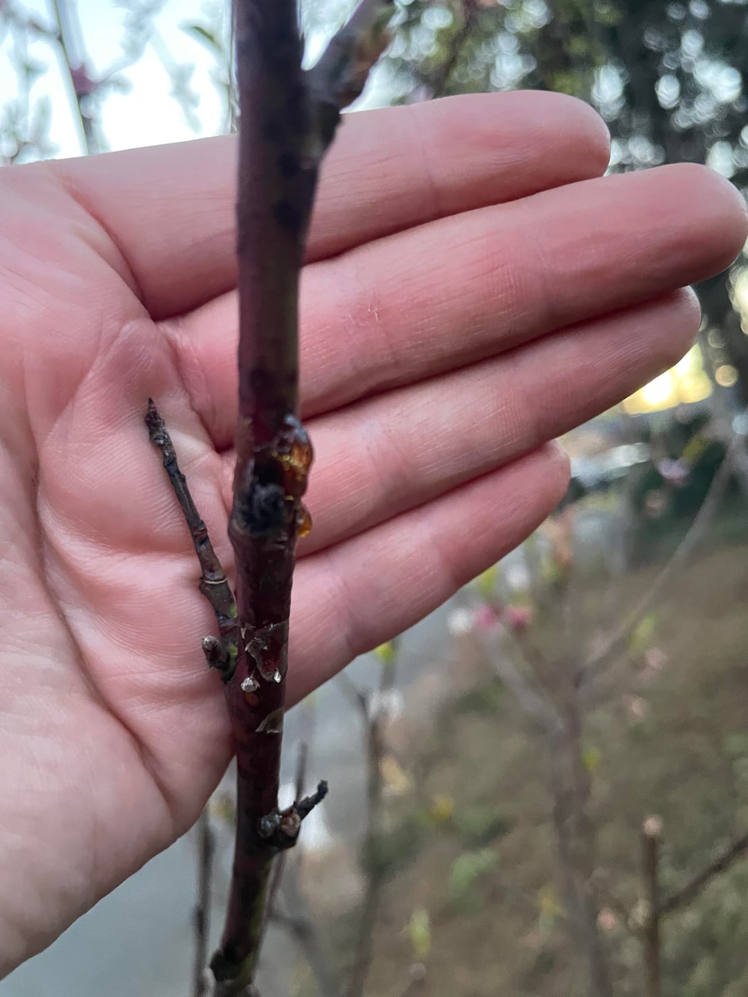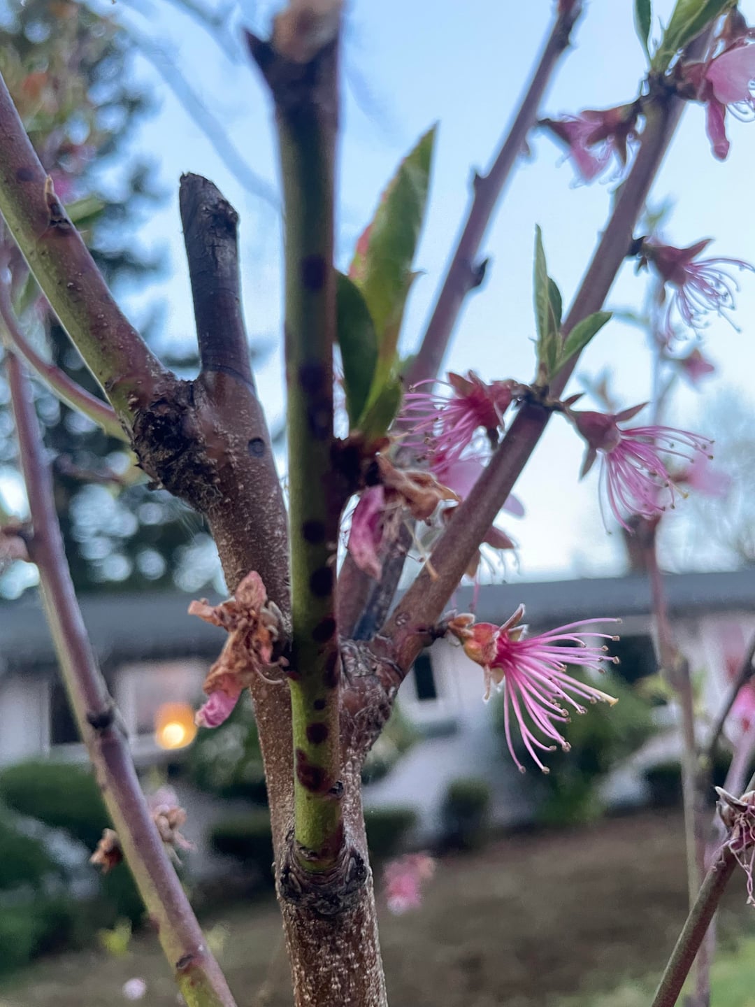 Hallo zusammen, mein Pfirsichbaum hat einige interessante Stellen an den neuen Zweigen und es sieht so aus, als würde er sie absterben lassen. Ich habe diesen Baum erst letzten Sommer gepflanzt, er steht vor meinem Haus und bekommt die volle Sonne, man kann den Wurzelaustrieb sehen, und ich habe den gesamten Landschaftsbaustoff zerrissen. Ich habe gerade das gesamte Unkraut, Gras und Moos drumherum entfernt und pflanze Klee und Wildblumen. Ich mache mir Sorgen, dass es sich um Braunfäule handelt, und ich bin traurig, aber ist es besser, jetzt zu wissen, was zu tun ist, als sie sich ausbreiten zu lassen? Ich habe versucht, bei Google nachzufragen, aber ich komme nicht weiter, da es noch Frühling ist und es keine Früchte gibt. Portland Oregon.