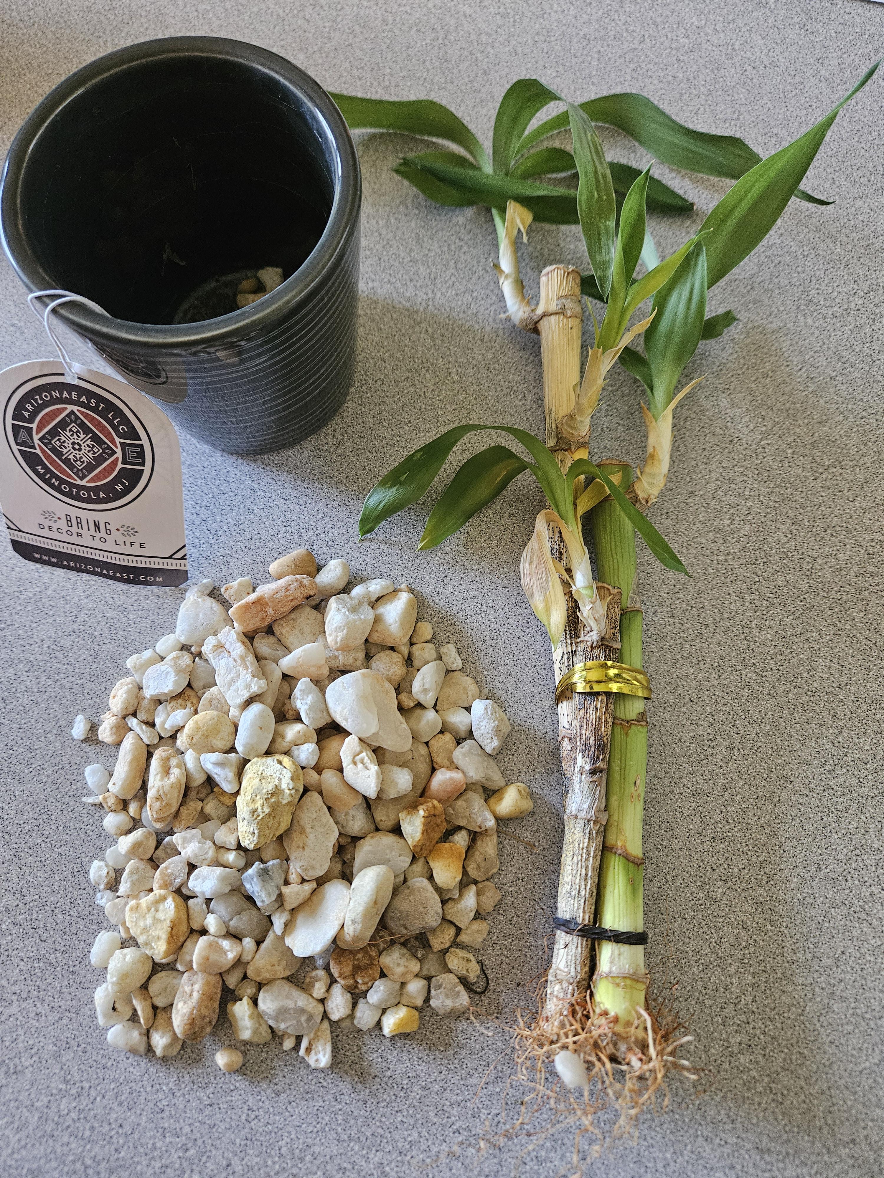 Meine Tochter hat mir zum Geburtstag eine kleine Bambuspflanze für den Innenbereich geschenkt. Bewahre es in meinem Büro bei der Arbeit auf. Es befindet sich in einer kleinen, mit Steinen gefüllten Vase. Mir ist aufgefallen, dass zwei der Stiele nicht so aussahen, als ob sie sich gut entwickelten, also habe ich sie entleert und so sieht es aus.