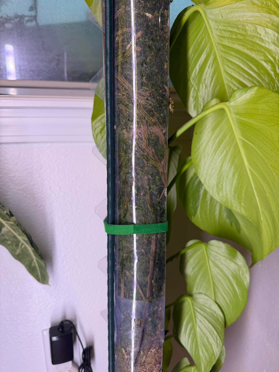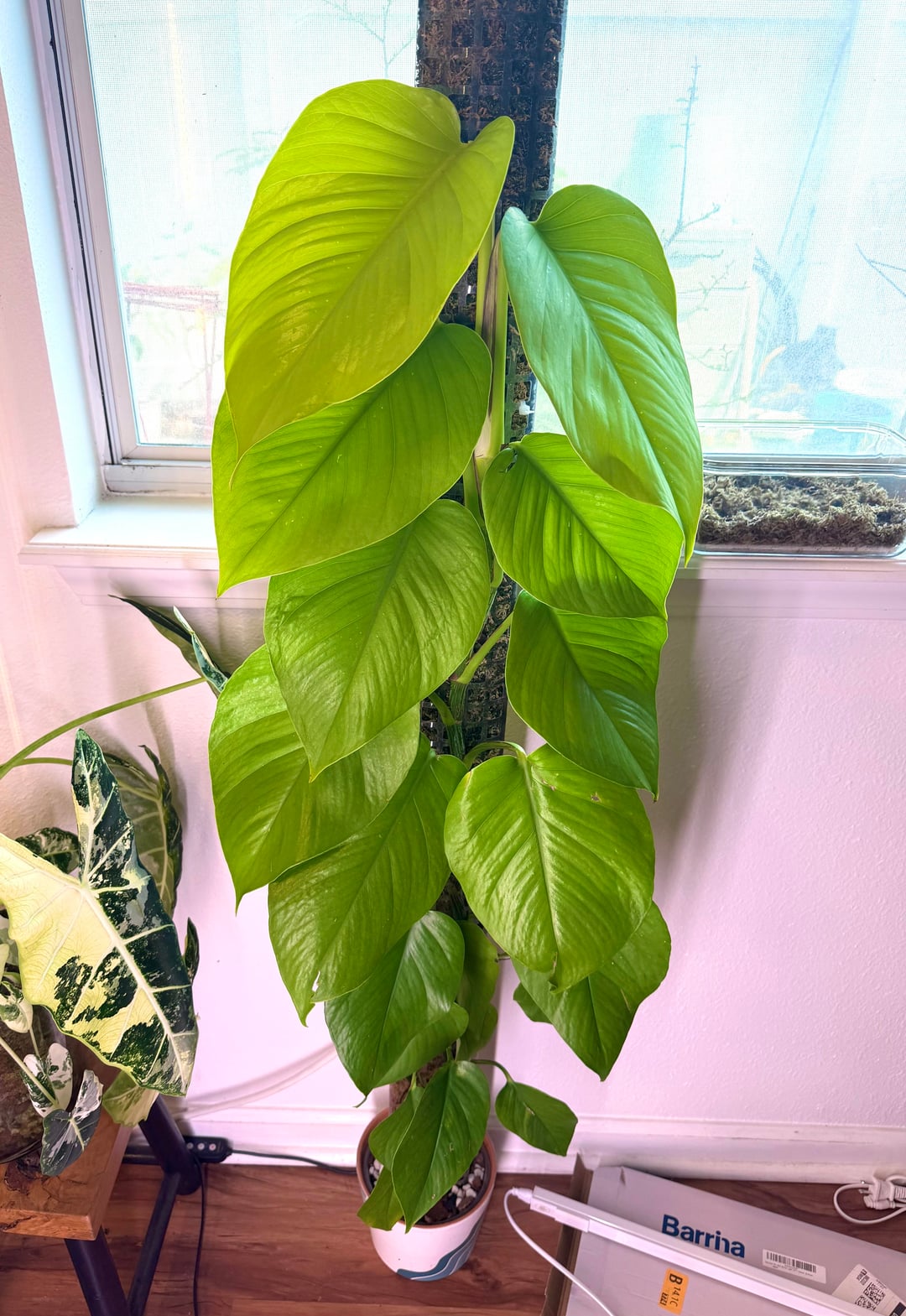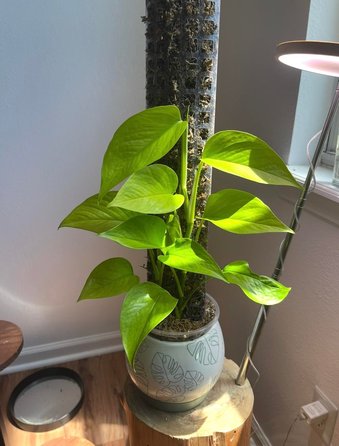 Letztes Jahr beschloss ich, dass ich es noch einmal mit Moosstangen versuchen wollte, nachdem ich sie abgeschworen hatte, also habe ich mit diesem Pothos klein angefangen. Einen Monat nachdem ich beobachtet hatte, wie es an der Stange befestigt und abgenommen wurde, wurde mir klar, dass ich Moosstangen liebe, und jetzt ist mein Haus voller Moosstangen. Aber dieser wird immer mein Erstgeborener sein!