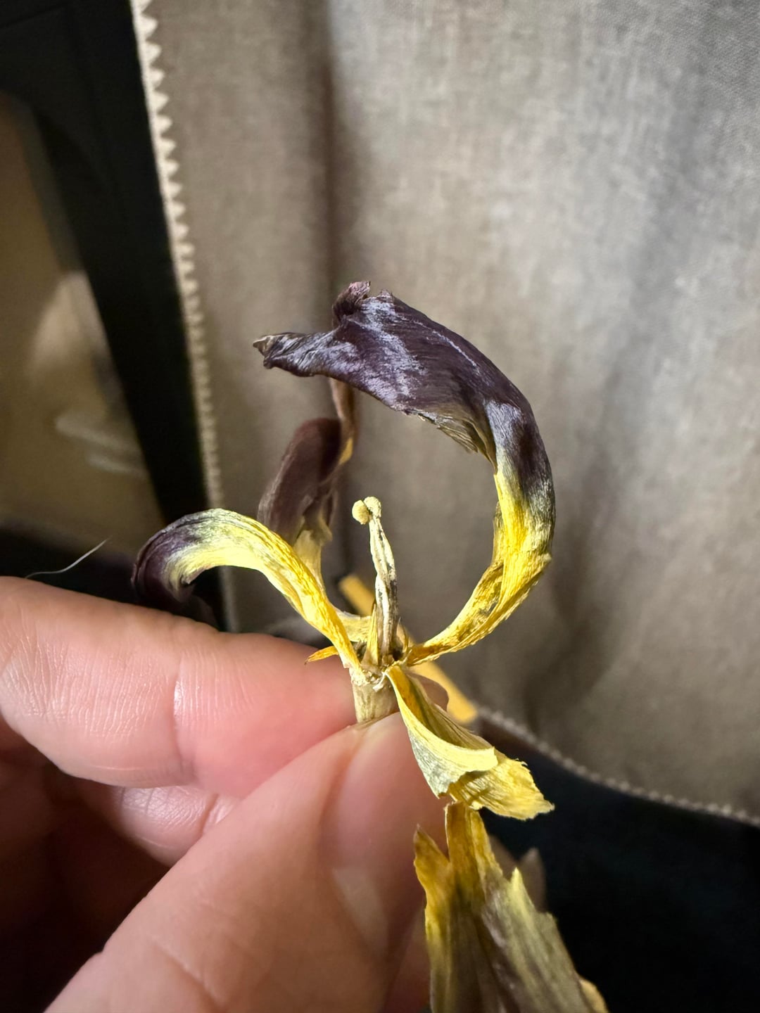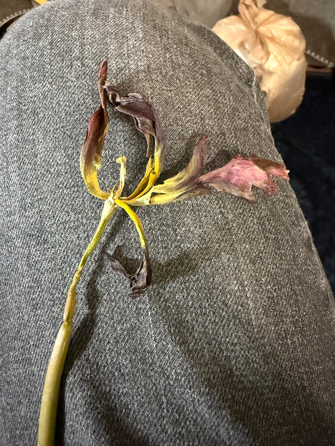 Es ist ein wenig verwelkt, daher ist es wirklich schwer zu erkennen, und es wurde von einem Freund geschenkt. Laut Pflanzenidentifikator handelt es sich wahrscheinlich um eine Tulpe oder Iris, aber ich brauche eine zweite Meinung, das ist eine sehr unwahrscheinliche Lilie.