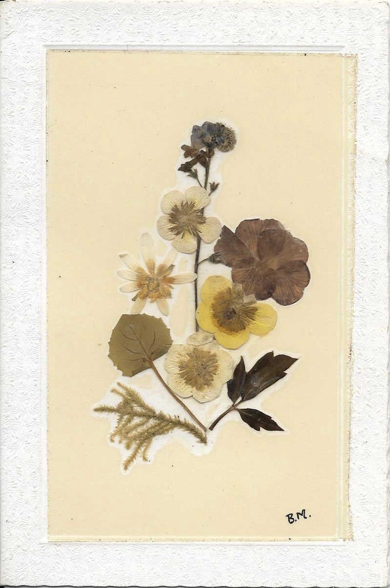 Meine Urgroßtante hat diese Blumen wahrscheinlich vor etwa 80 Jahren aus Cornwall gepresst, um sie einem meiner Urgroßeltern zum Geburtstag zu schicken. Ich würde gerne wissen, was diese Blumen sind, damit ich versuchen kann, sie selbst zu finden und zu pressen, damit ich sie meinem Opa schenken kann.