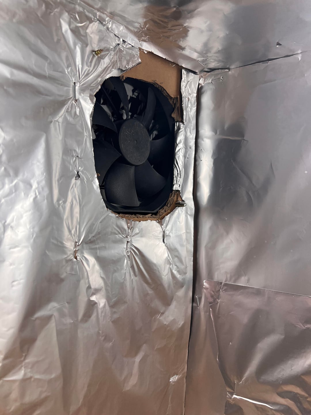 We all start with a cardboard box and some foil. The computer fan is a nice touch 👌🏼