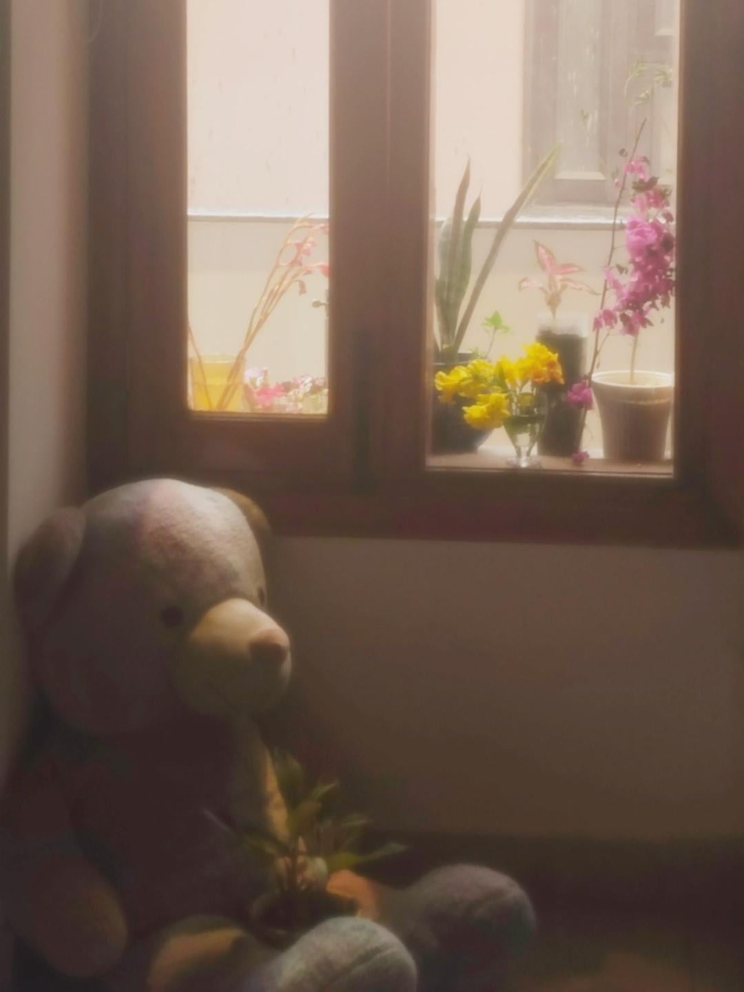 Ich bin deprimiert und habe eine Verstauchung und beides hat mich dazu gebracht, mich an mein Bett zu fesseln. Ich war verärgert, weil ich die Bougainvillea dieser Saison nicht gesehen habe, und meine Mutter hat sie mir mitgebracht ❤️ zusammen mit gelben Blumenzwiebeln. Dann machte sie das alles weiter.