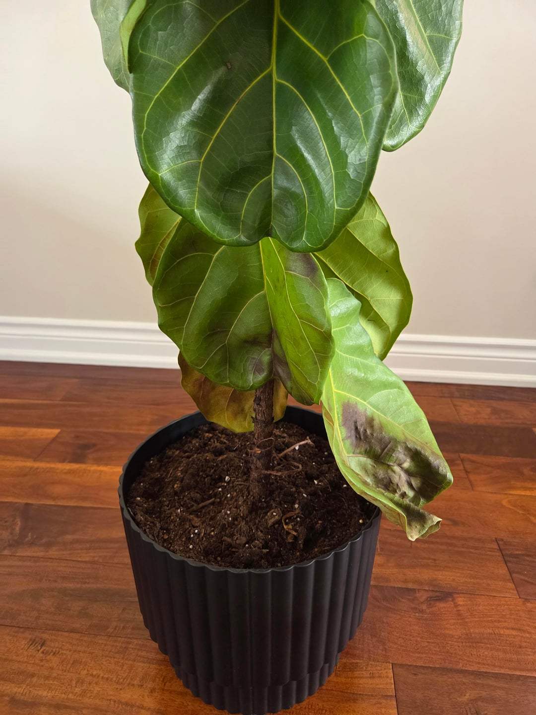 Ich habe zuvor über meine Geigenblattfeige gepostet, die viele Blätter an der Unterseite abwirft. Die Community schlug vor, in einen größeren Topf umzutopfen, da die Wurzeln verwickelt waren und nicht genügend Erde vorhanden war. Selbst nachdem ich das getan und ihm Sonnenlicht gegeben habe, scheint es zu sterben. Denke, es ist eine Infektion. Gibt es Überlegungen, was ich tun könnte, um es zu retten?
