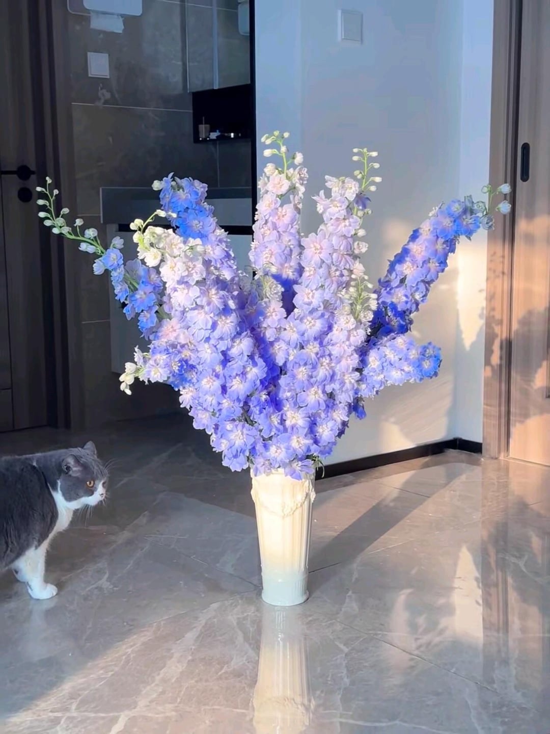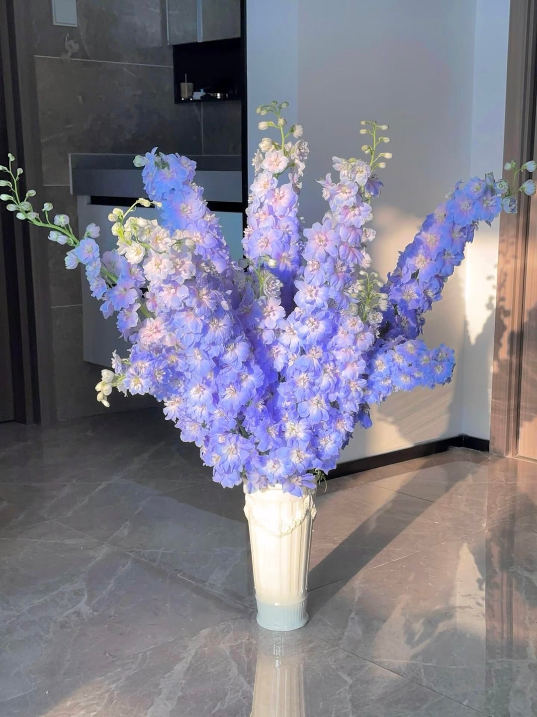 Das Morgensonnenlicht trifft perfekt auf diese riesigen Rittersporn