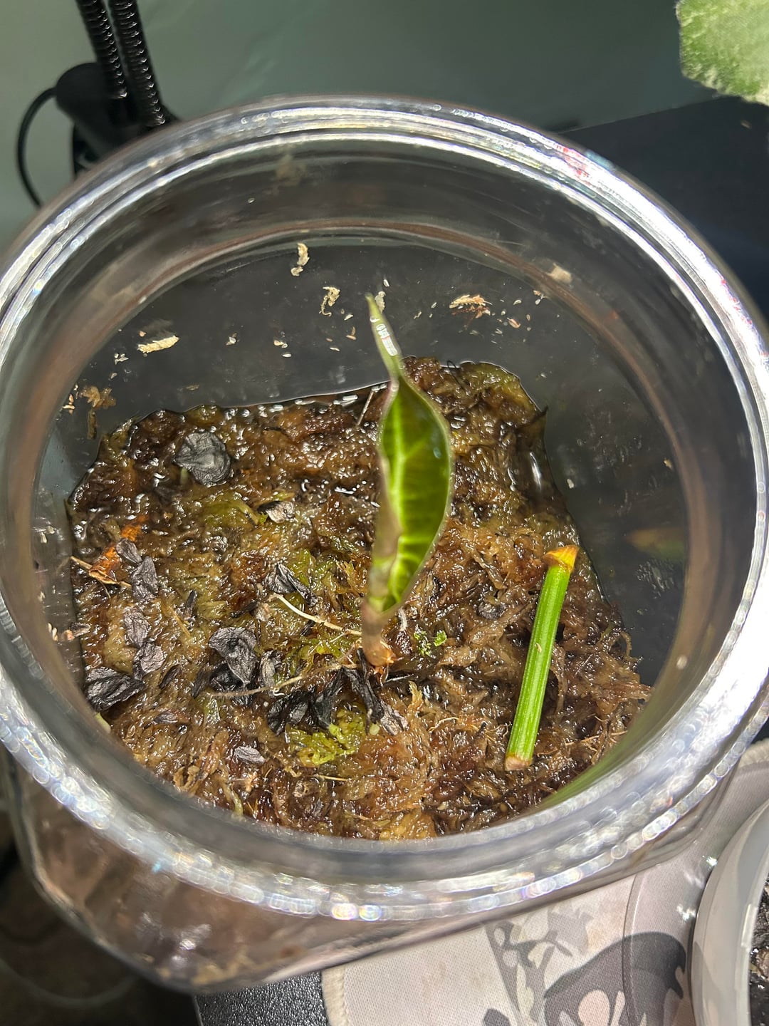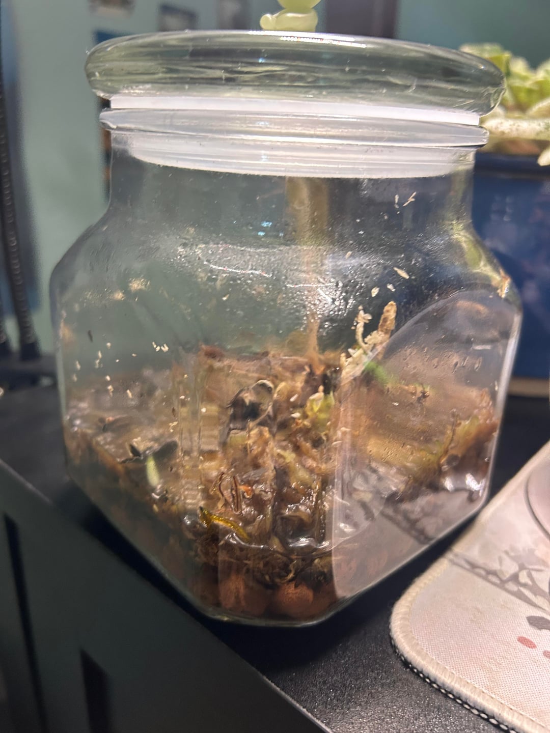 Also hatte ich dieses seltsame kleine Anzuchtglas-Ding, das ich für Pflanzen verwendet hatte, die Feuchtigkeit brauchten. Super seltsames Setup, aber es hat überraschend gut funktioniert.