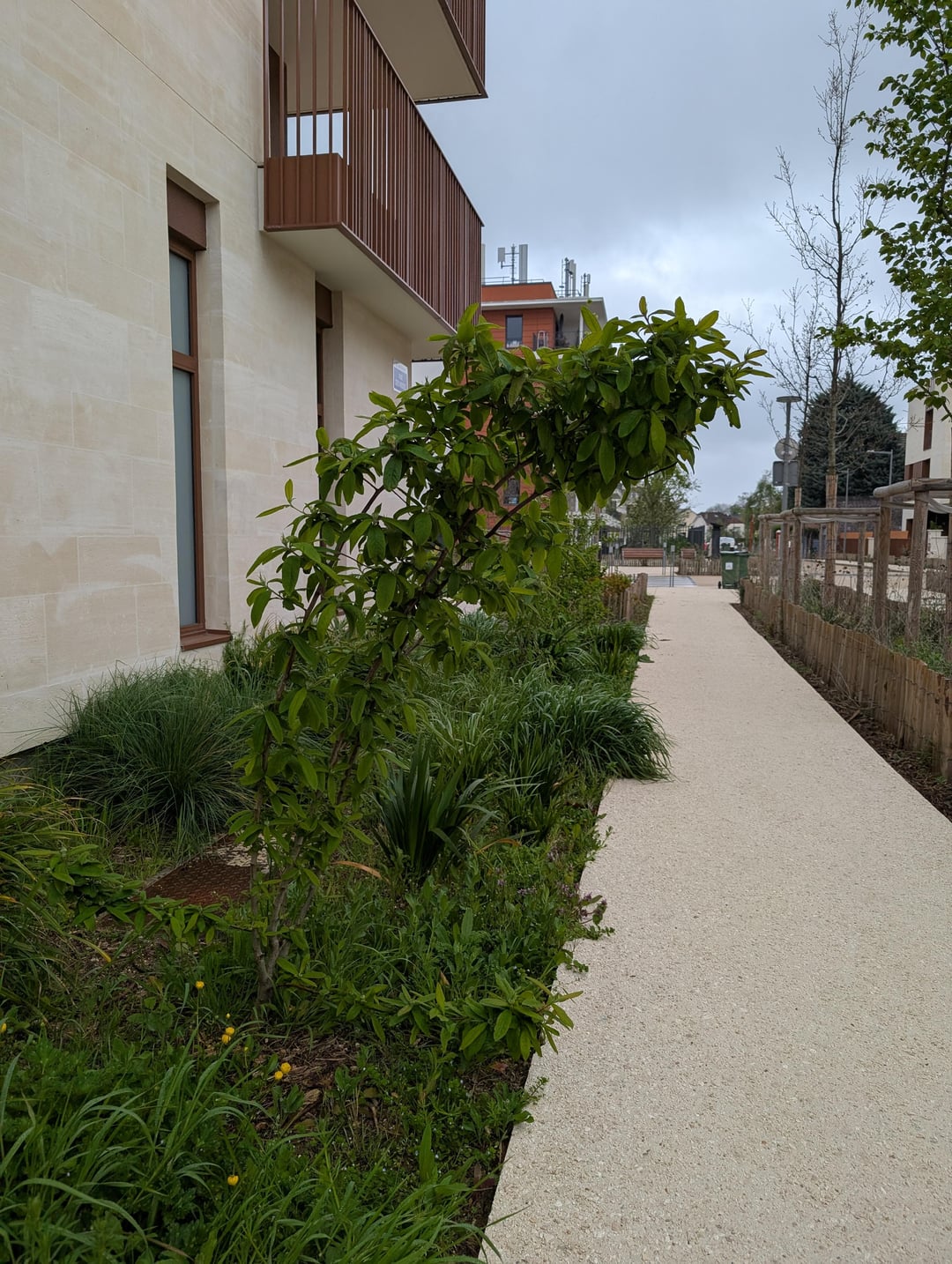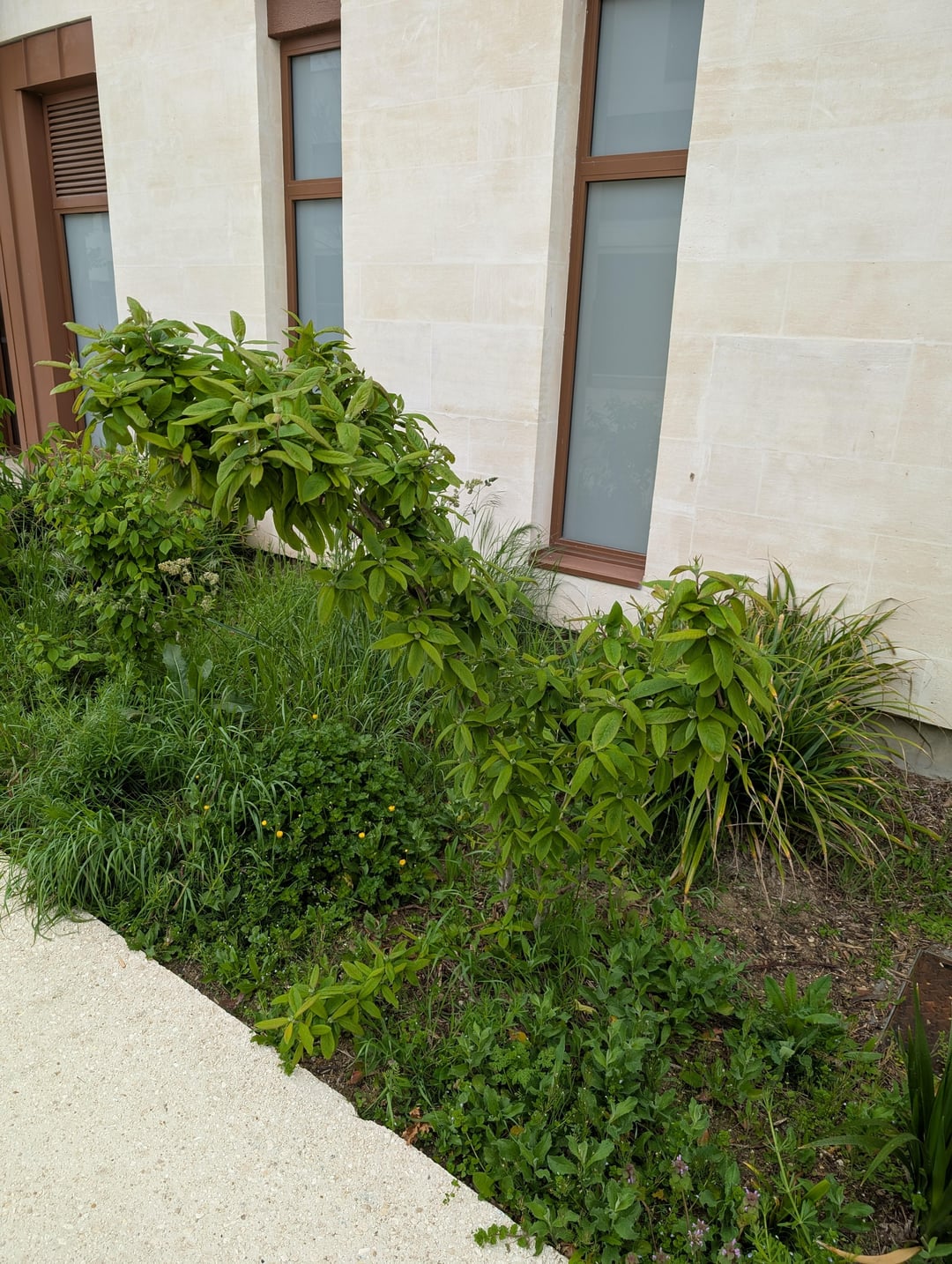 Dieser Strauch (eine deutsche Mispel scheint mir) besteht darauf, sehr vertikal zu wachsen. Darüber hinaus neigt es dazu, den Durchgang von Fußgängern zu behindern, sodass die Gefahr besteht, dass es beschädigt wird.