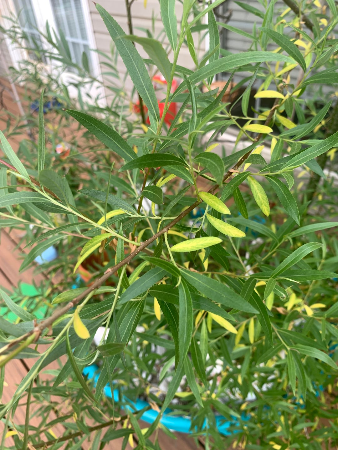 Ich habe eine Silberweide, die ich im März letzten Jahres in South Carolina, Zone 8a/7b, aus einem Steckling gezogen habe. In einem 5-Gallonen-Eimer, der wie in einem Kinderbecken vom Boden aus bewässert wird, ist er in einem Jahr um 11 Fuß gewachsen. Aufgrund der Löcher in den Seiten des Kinderbeckens lässt die Anordnung maximal 5 cm Wasser zu. Es hat gut funktioniert, wie das Wachstum zeigt. Es wurde mit Regen bewässert, aber ich musste auch mit chloriertem Leitungswasser gießen. Und letztes Jahr, nachdem ich den Steckling in den Topf gepflanzt hatte, legte ich etwa fünf Zentimeter Kaninchenmistpellets darüber, um die Nährstoffe mit dem Regenwasser aufzusaugen (und wie ein Mulch die Verdunstung zu unterstützen).