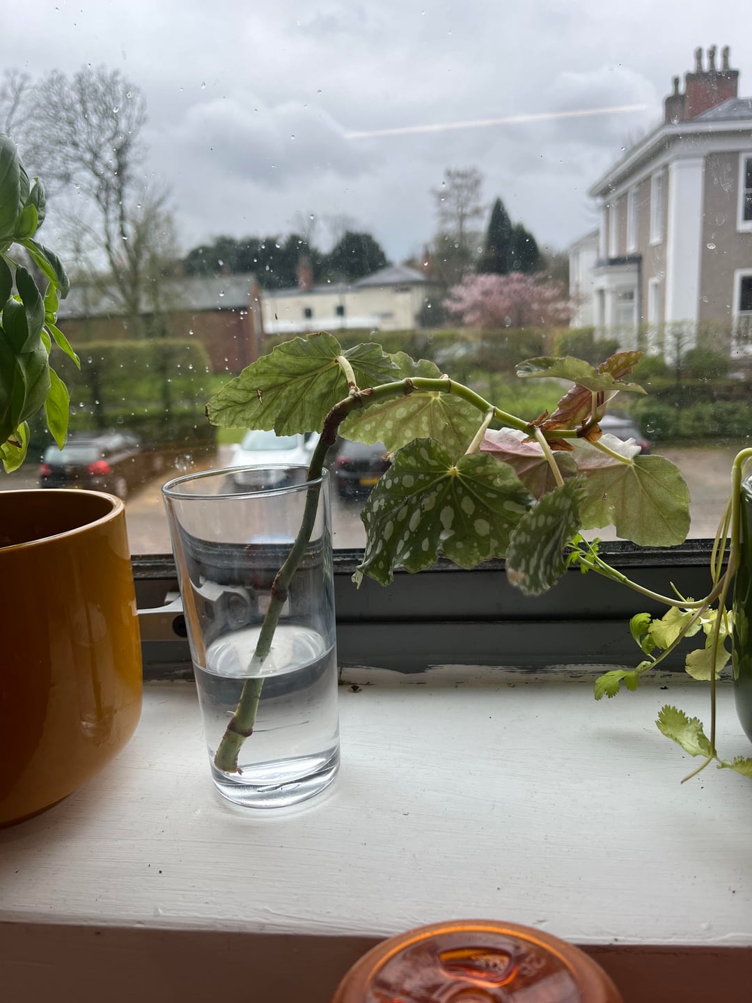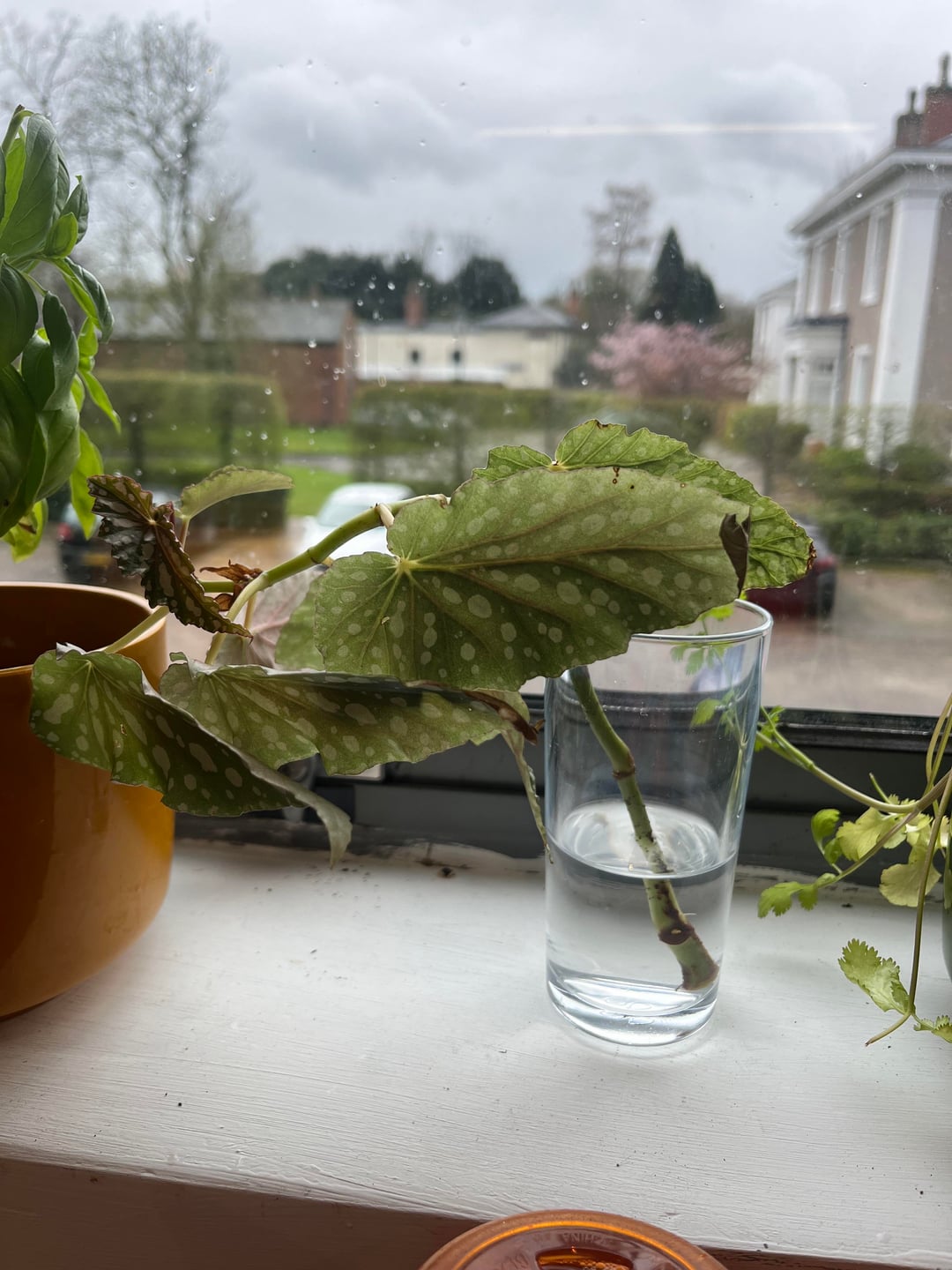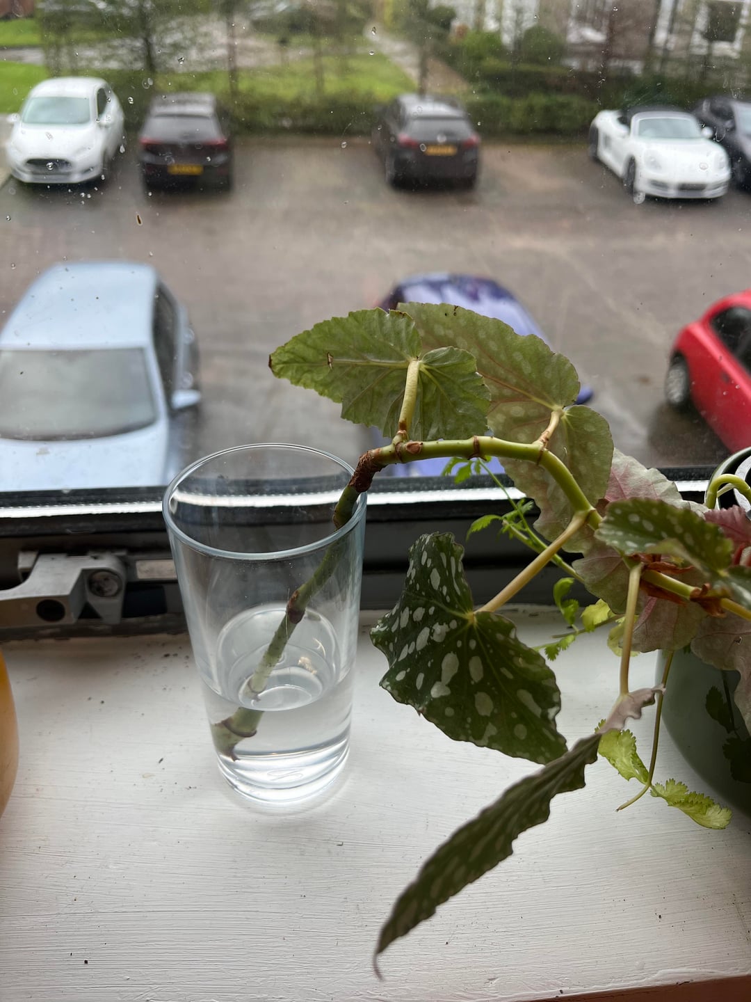 Mir ist kürzlich ein Zweig meiner wunderschönen Begonie abgebrochen, also habe ich ihn in etwas Wasser gelegt, um ihn zu stützen. Allerdings ist der Stamm stark gebogen, daher frage ich mich, ob ich ihn höher hacken muss, um ihn wieder gerade wachsen zu lassen, oder ob das in Ordnung ist? Ich möchte mich nicht zu sehr damit herumschlagen, aber ich möchte ihm die besten Chancen auf Glück geben 🥹 Vielen Dank an alle!