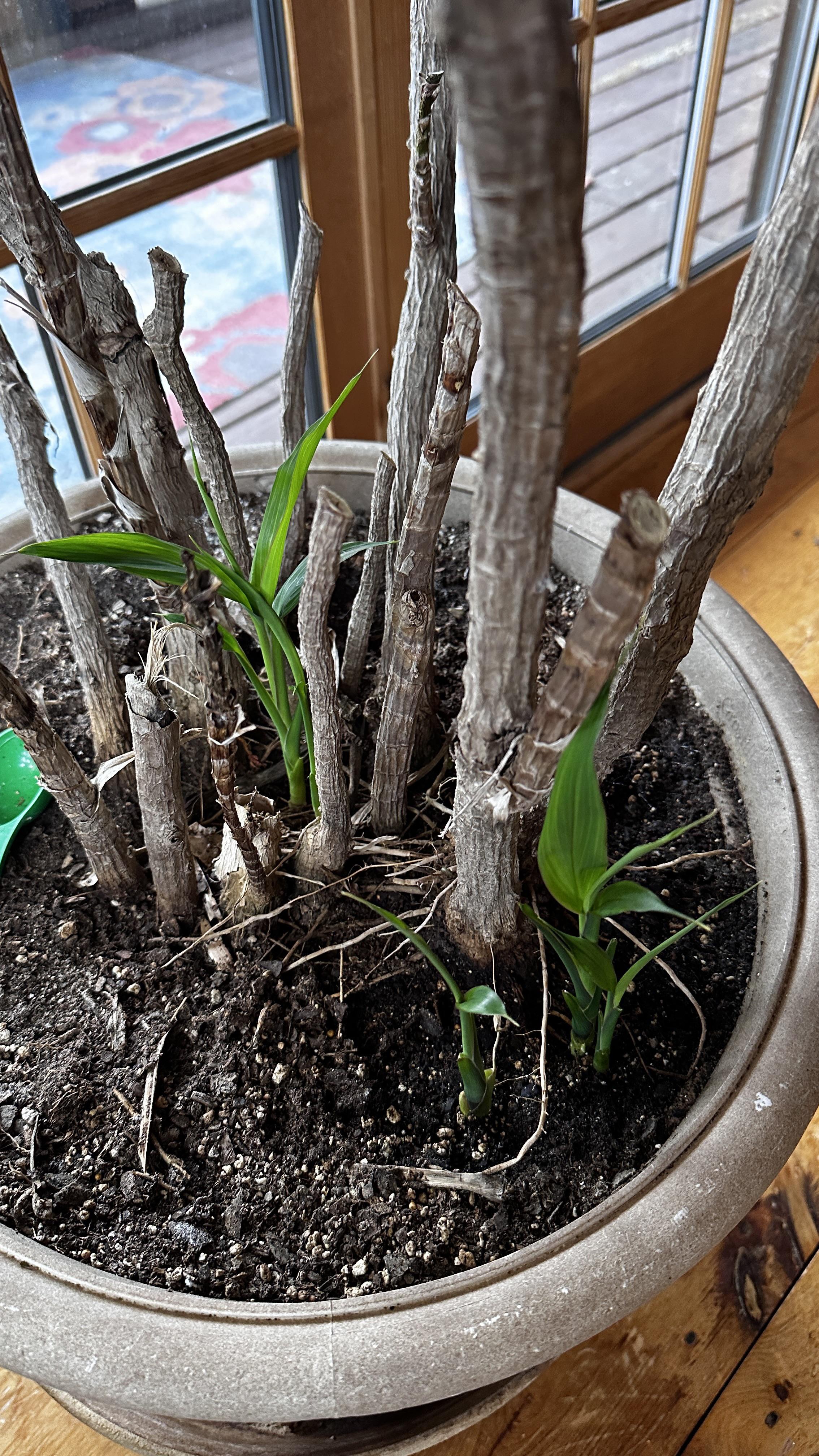 Das war 35 Jahre lang die Pflanze meiner Mutter. Sie starb im Dezember und mein Vater ließ es sterben. Ich war gelinde gesagt am Boden zerstört. Ich habe alle Blätter/Stämme/Zweige zurückgeschnitten und ES KAM ZURÜCK!! Ich bin so aufgeregt! Aber ich habe keine Ahnung, was es ist.