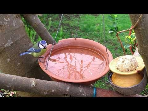 Niedliche britische Gartenvögel fressen gerne Meisenknödel!