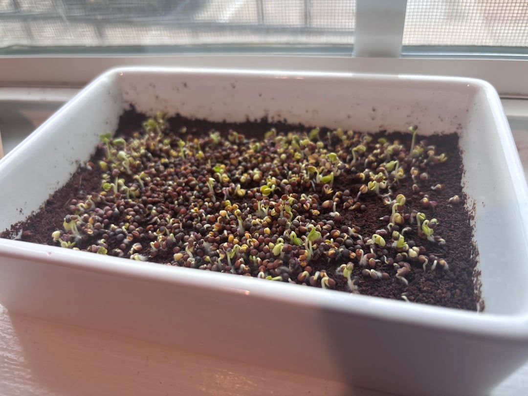Ich habe es vor allem aus Neugier bei Target gekauft, wollte aber wissen, ob es hier schon jemand gekauft hat. Es begann innerhalb weniger Tage zu wachsen und es heißt, es enthält Grünkohlsamen, Kohlsamen, Brokkolisamen und einen, an den ich mich nicht mehr ganz erinnere