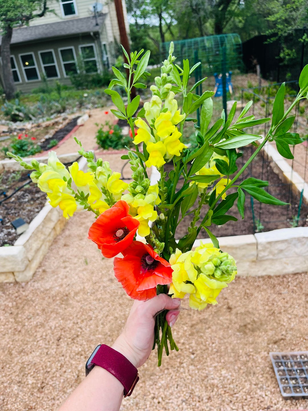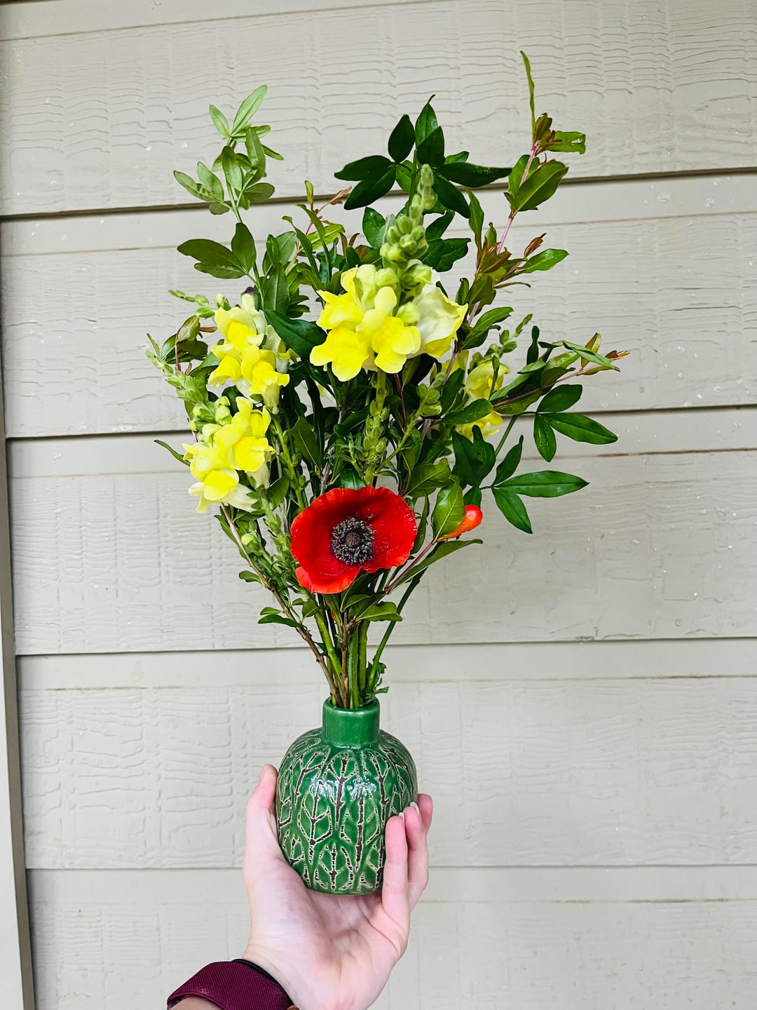 Der erste ist ein Blumenstrauß, den ich für meine Nachbarin gemacht habe, die mir letzten Sommer einen wunderschönen Blumenstrauß aus ihrem Garten geschenkt hat. Ich habe fast ein ganzes Jahr darauf gewartet, das Geschenk zurückzugeben!