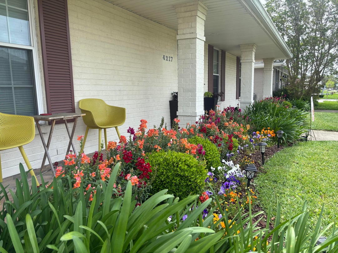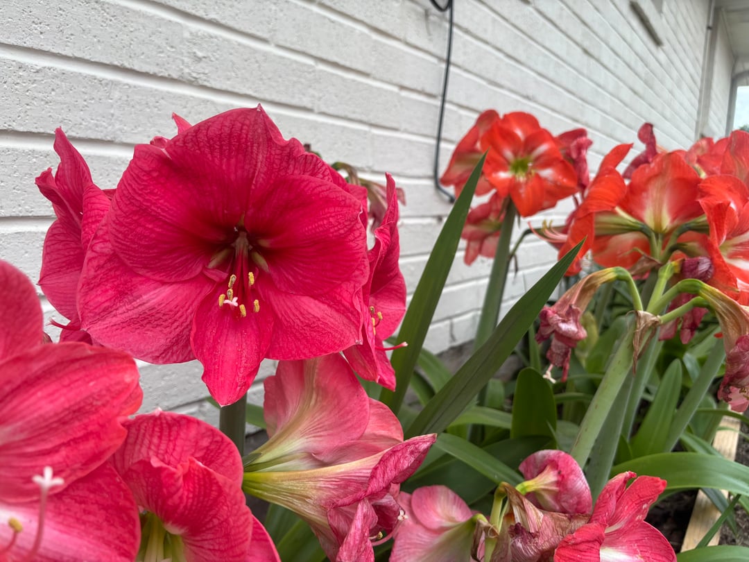 Mit Amaryllis, Löwenmaul, Stiefmütterchen und Bratschen