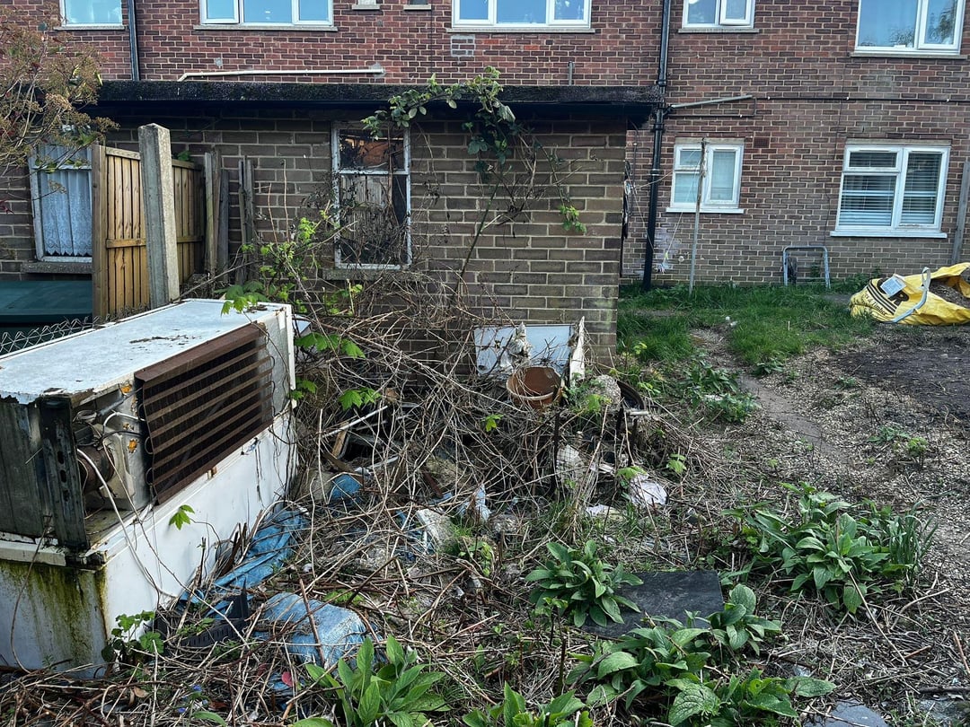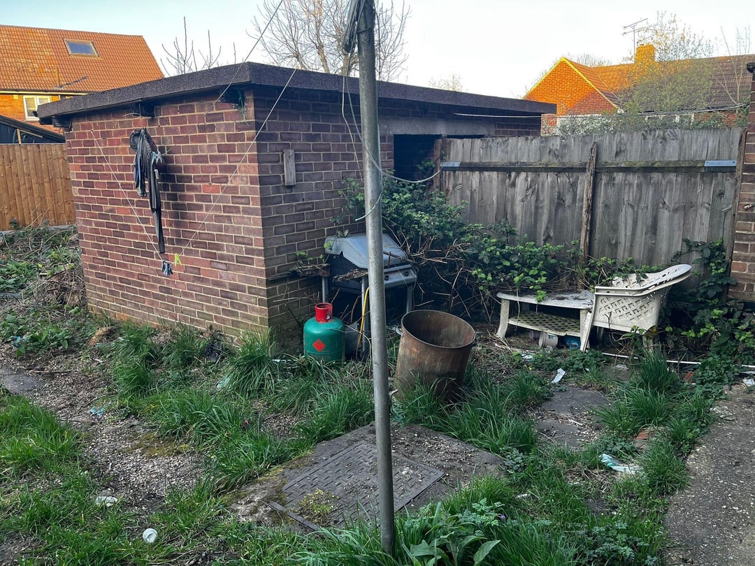 Doesn’t look like you can get in the little building yet (is it an outhouse?), I would be trying to make easy access to it, if only to see what state the inside is & figure out what it’s going to take to bring it back into use.