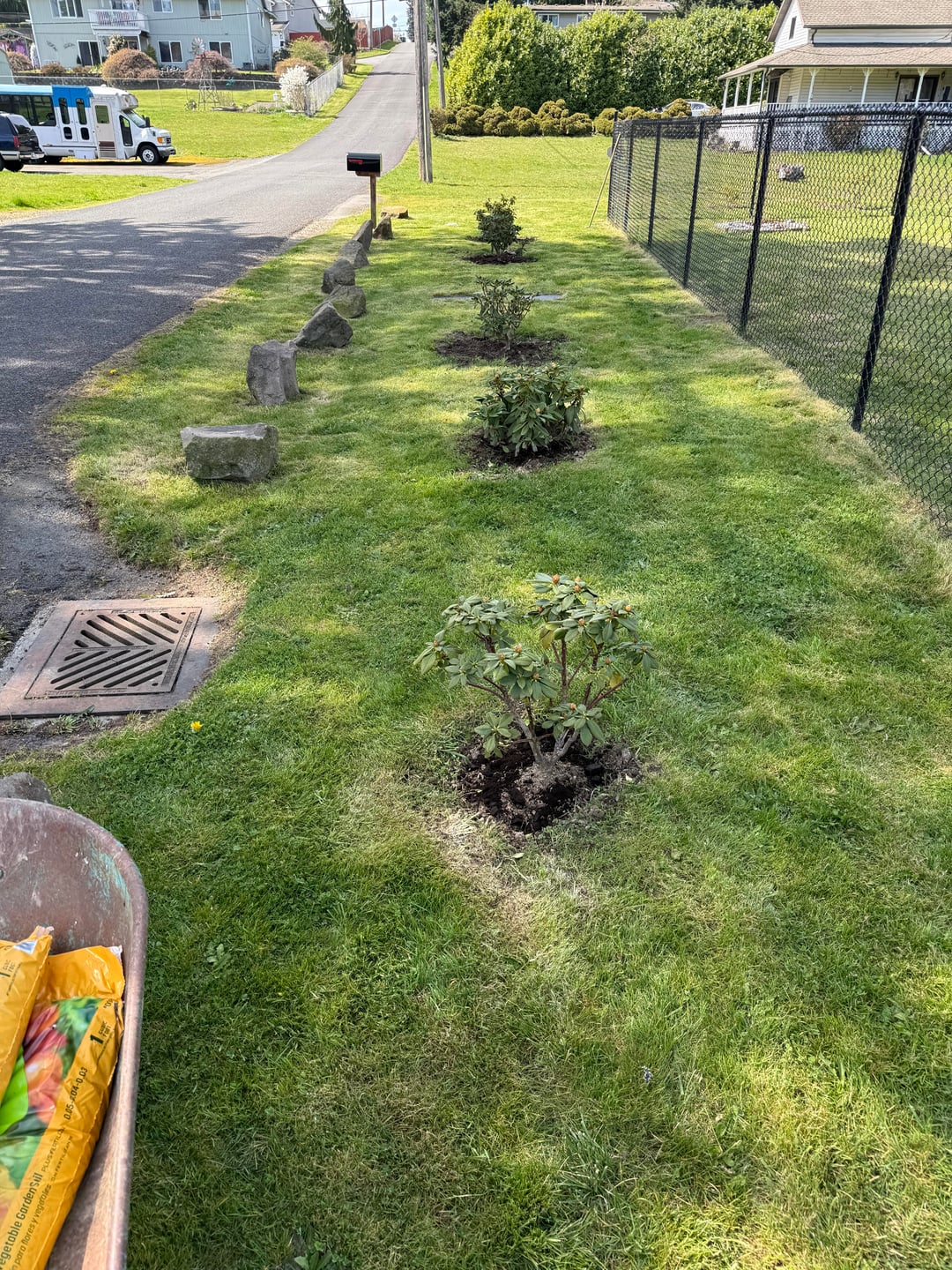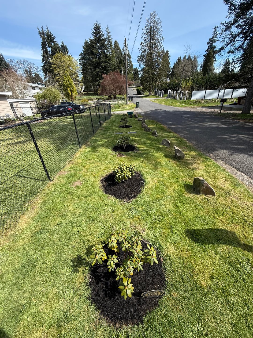Unter den 2 Jahre alten Rhododendren gedeckt, kostenloser Starbucks-Kaffeesatz, Muttererde und schwarzer Mulch hinzugefügt 6/16 fertig 🥵 Von: Downtown-Trip-2763