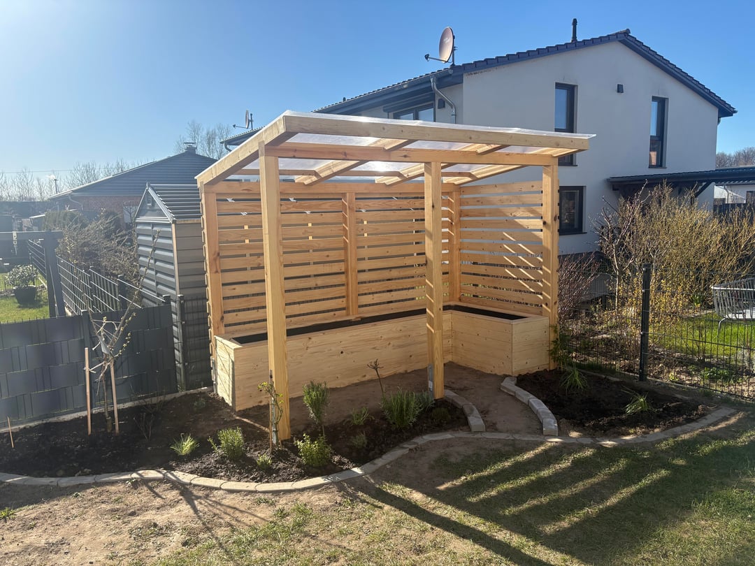 Was hast du für Bretter verwendet für den Sichtschutz hinter der Pergola? Sieht echt super aus