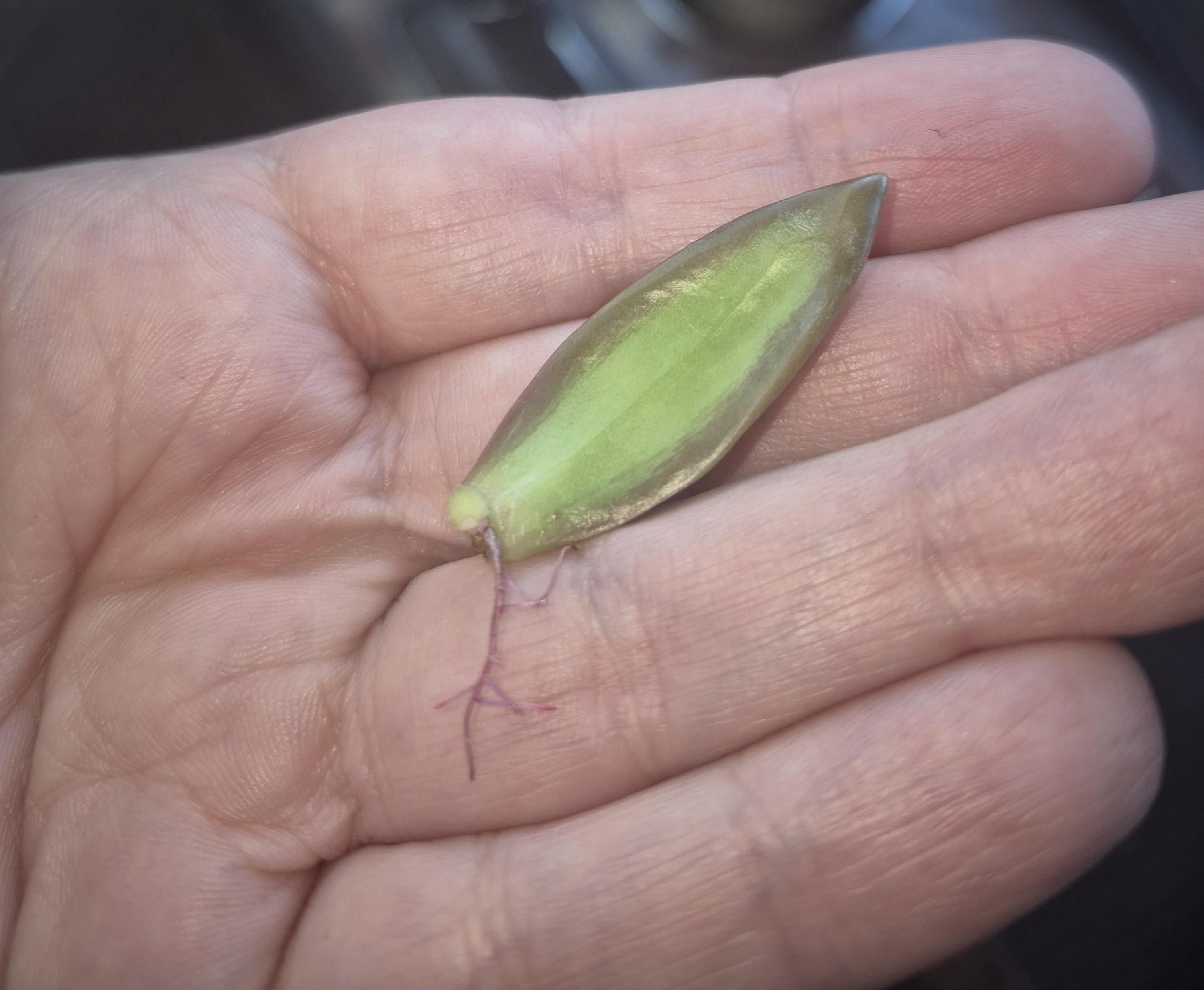 Punktzahl! Ich habe noch nie etwas proplifted, das bereits mit dem Rooten begonnen hatte! Irgendwelche Ideen, von welcher Sukkulente das ist? Der Umriss ist leicht rosa. Von: Illustrious-Ball6437