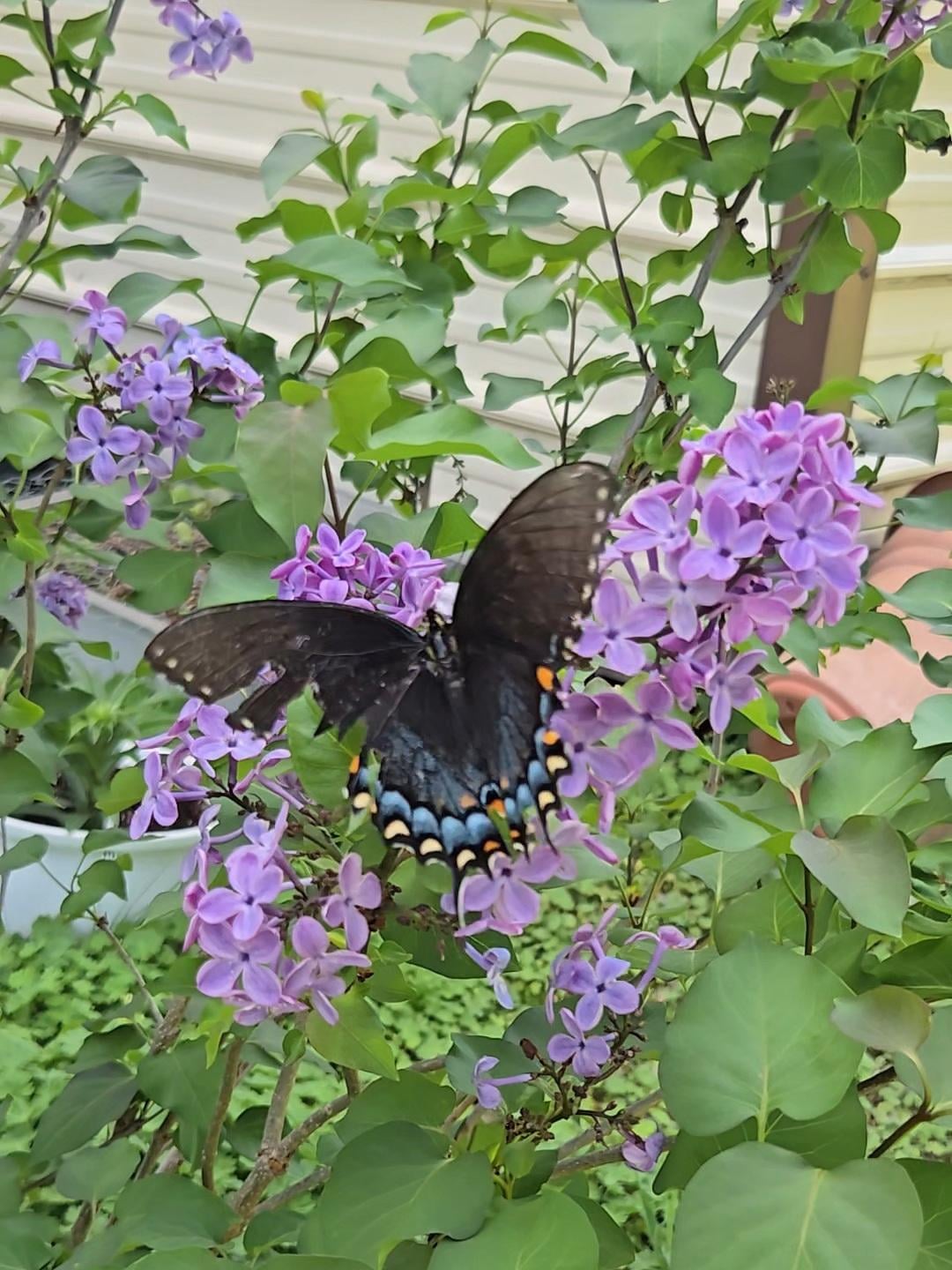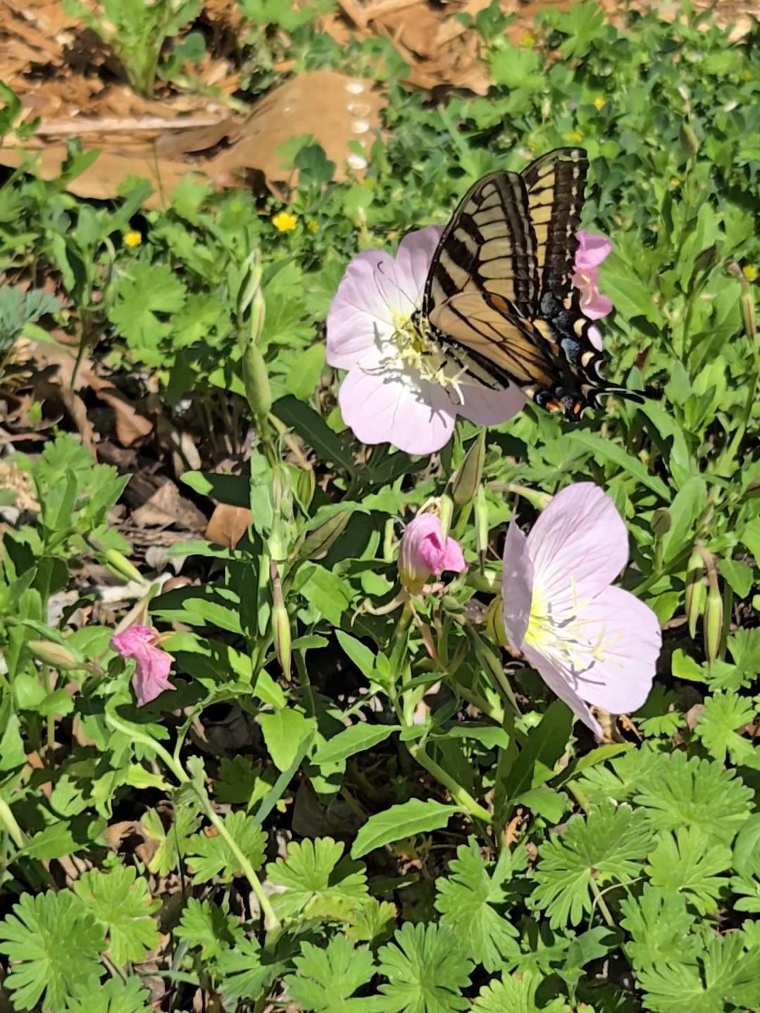 Ich habe auch einen Monarchen gesehen, aber der war zu schnell für meine Kamera. Die erste Pflanze ist ein Fliederstrauch, die zweite Pflanze ist eine Nachtkerze. Ich habe letzten Herbst ein Beet gepflanzt.