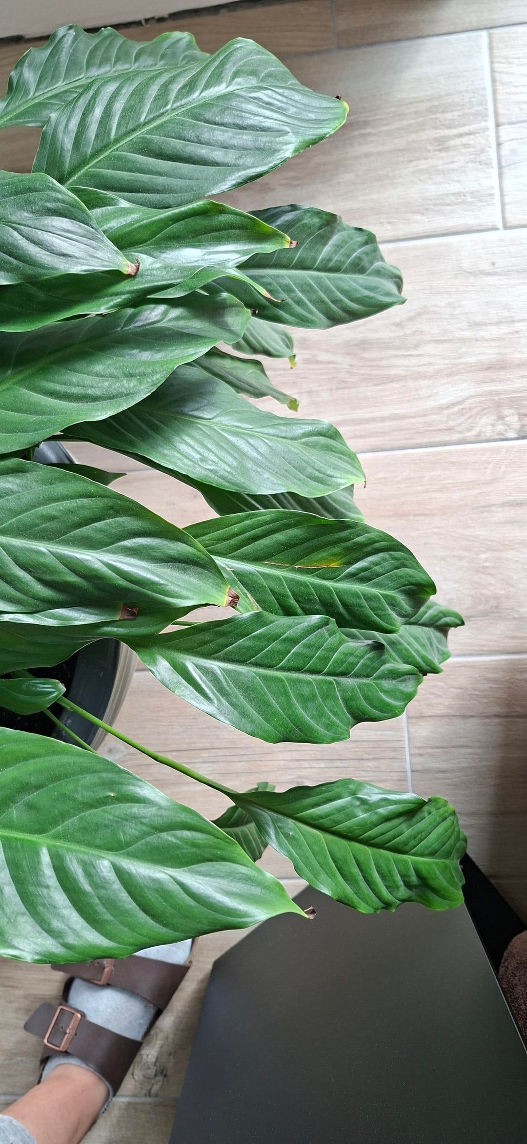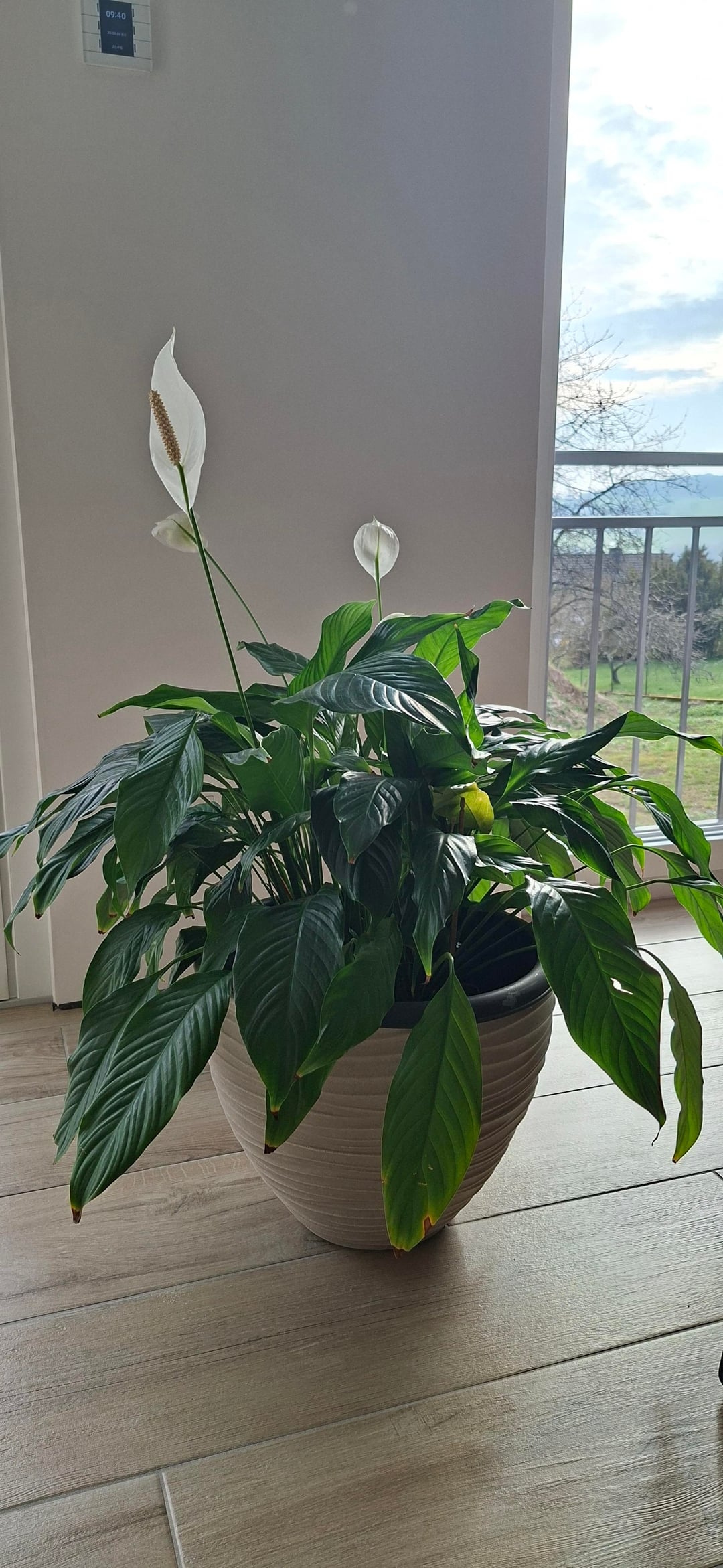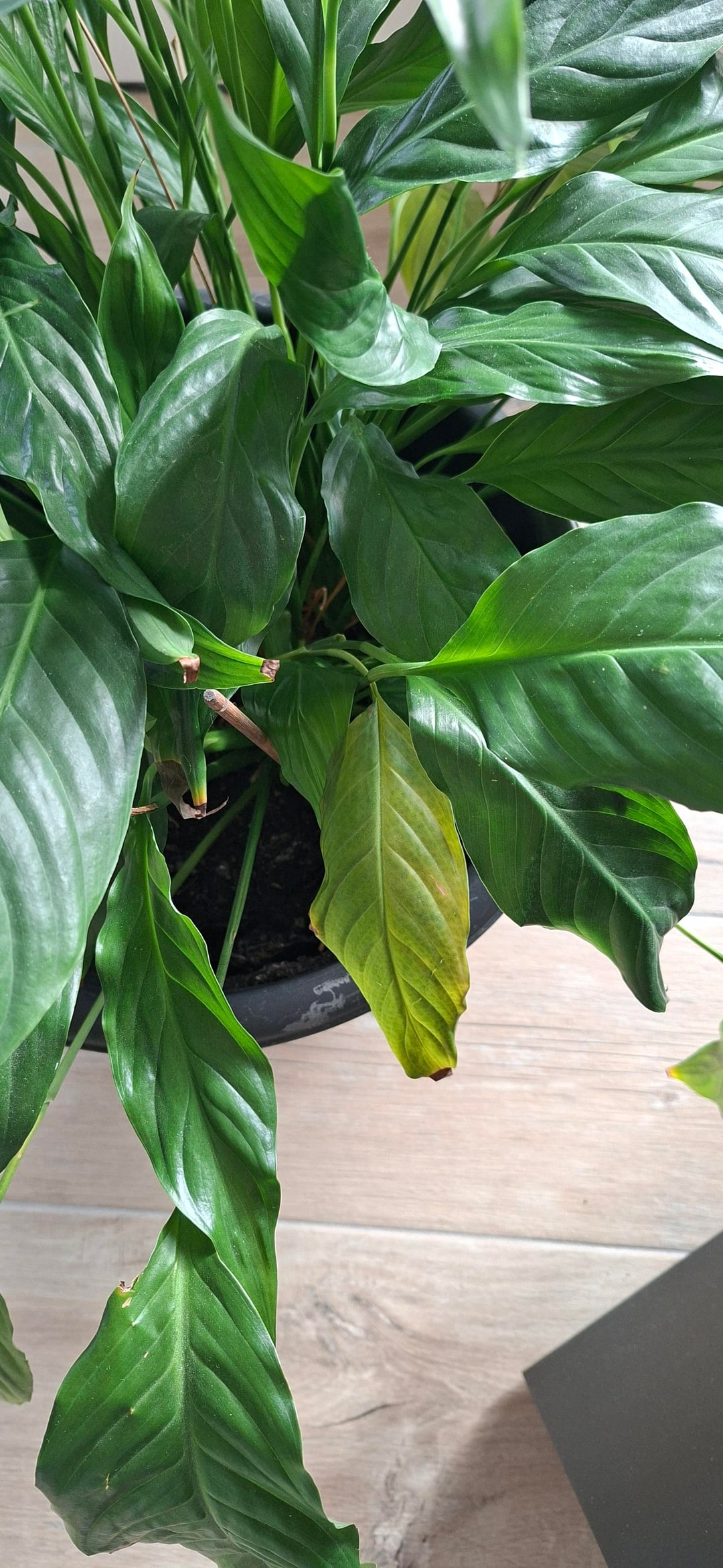 ich habe von einer Nachbarin dieses Einblatt geschenkt bekommen. Sie steht nun schon ein paar Wochen hier und bekommt auch fleißig Blüten und neue Blätter. Frage mich nun zum einen weshalb die gute trockene Spitzen hat und zum anderen, ob es nicht besser wäre Sie zu teilen und umzutopfen.