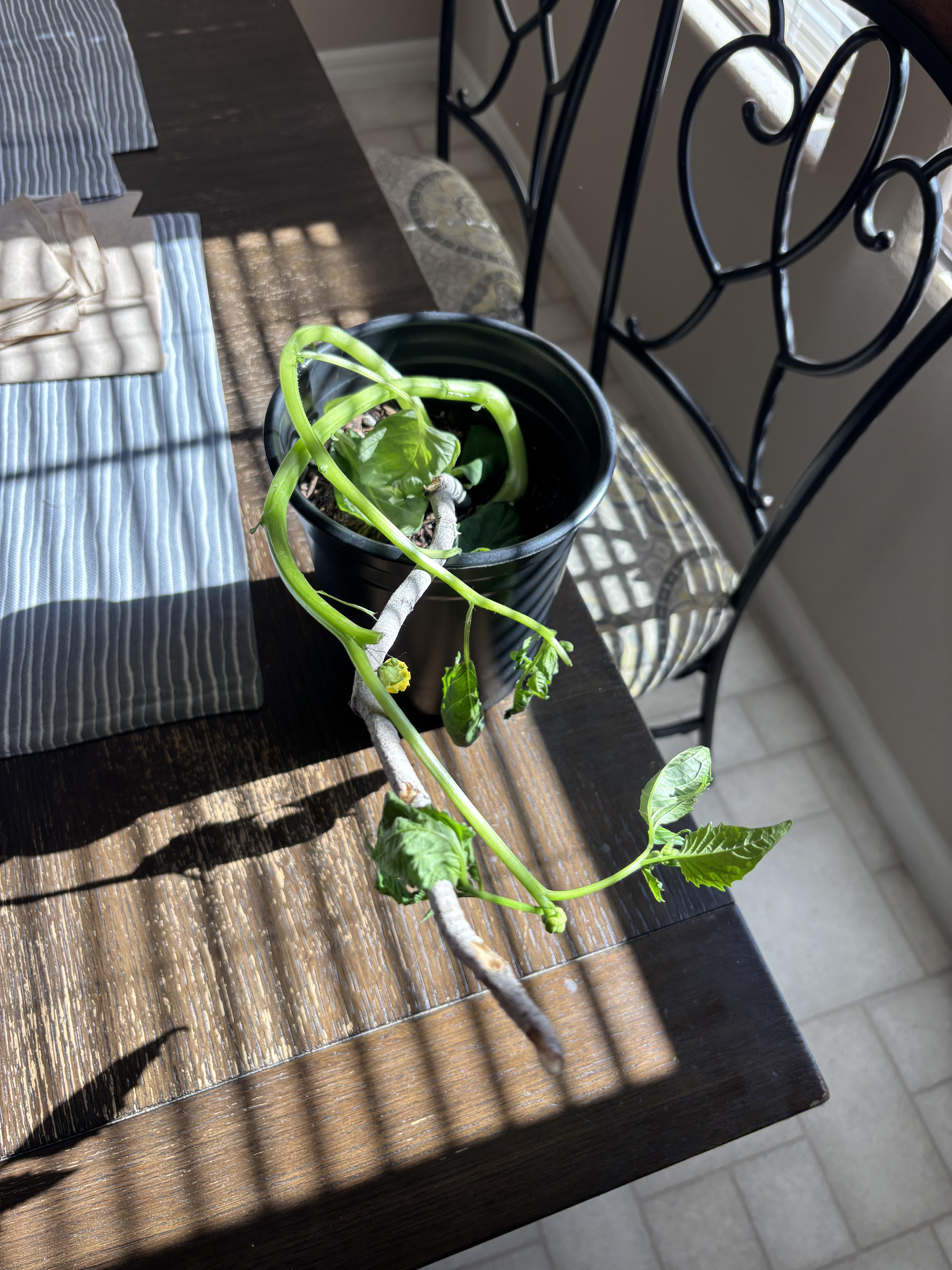 Ich habe das heute von einem Freund bekommen und es sieht nicht so aus, als wäre es sehr gesund. Ich habe keine Ahnung von der Pflege von Pflanzen, also tauche ich hier quasi ins kalte Wasser. Ich habe es gegossen, bis nur noch ein wenig Wasser aus dem Topfboden austrat, weil ich es nicht übergießen wollte. Vielen Dank im Voraus!