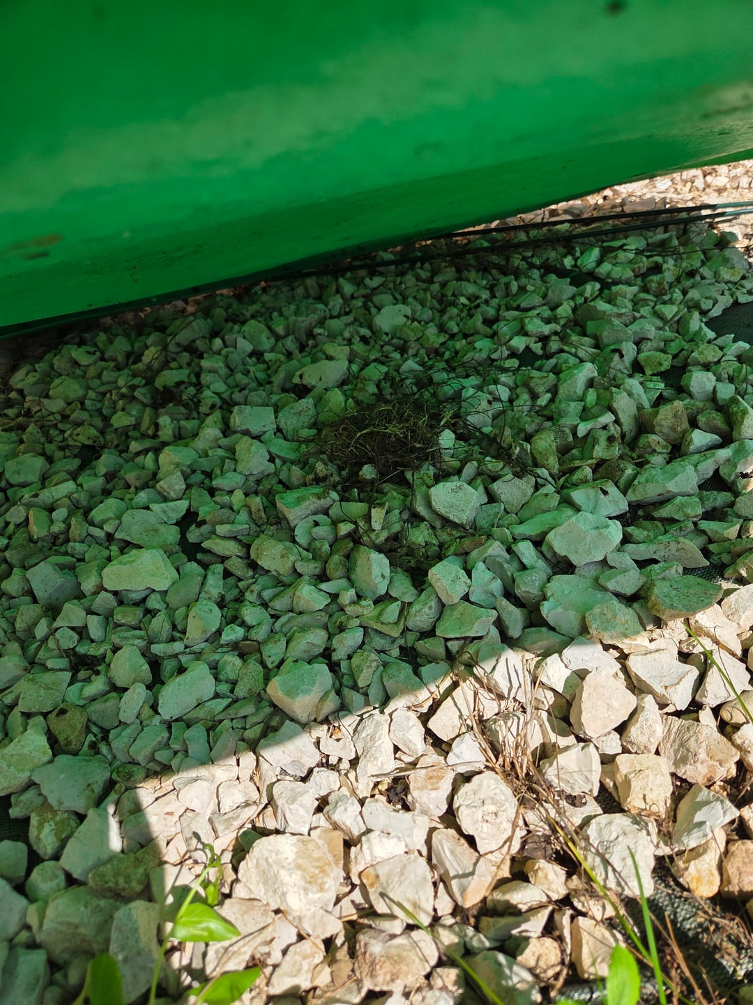 Ich kann sie für diesen Wurf eine Weile dort lassen (naja, ich weiß nicht, ob sie schon geboren hat oder nicht, ich habe das Nest nicht gestört), weil die Temperatur noch mild ist, aber dieser Standort ist nicht gut, wenn es anfängt, sehr heiß zu werden. Ihre zukünftigen Würfe werden unter diesem Tablett buchstäblich heiß kochen!