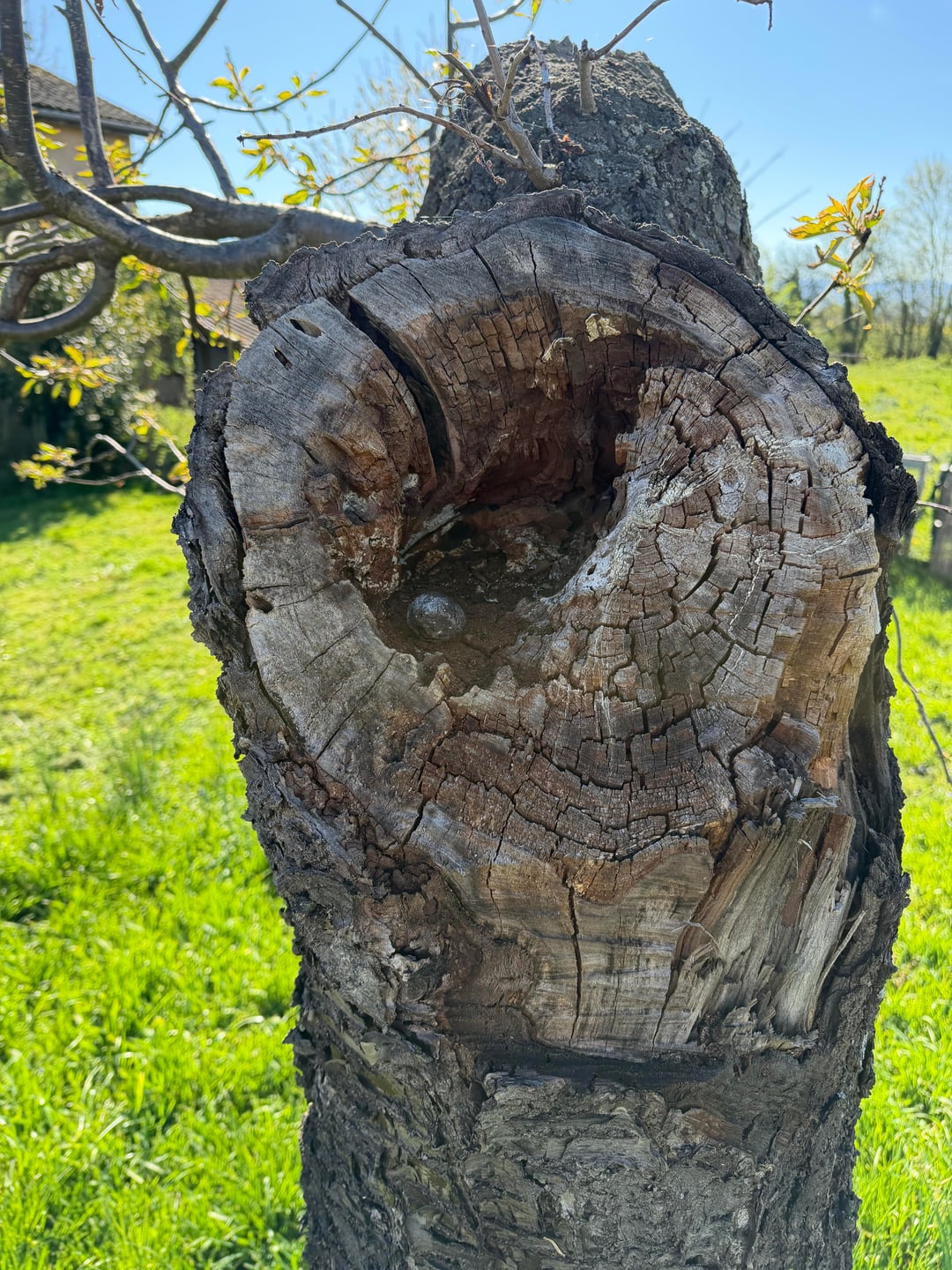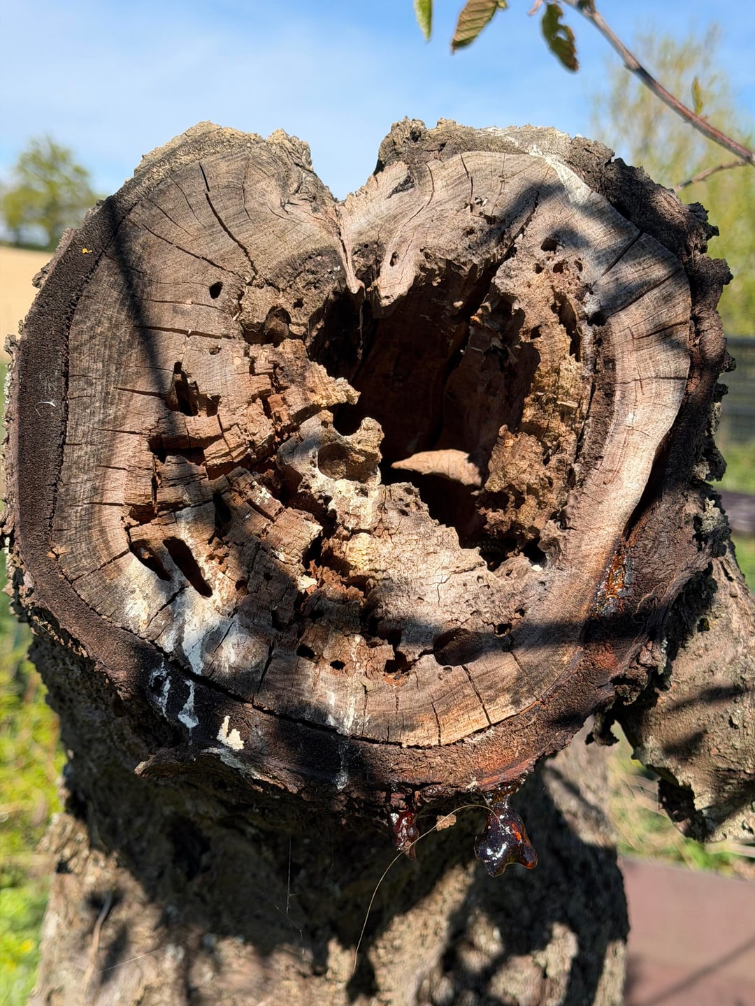 Dabei fiel uns auf, dass der Stamm hohl war und im Winter sogar ein Pilz an der Basis des Stammes wuchs.