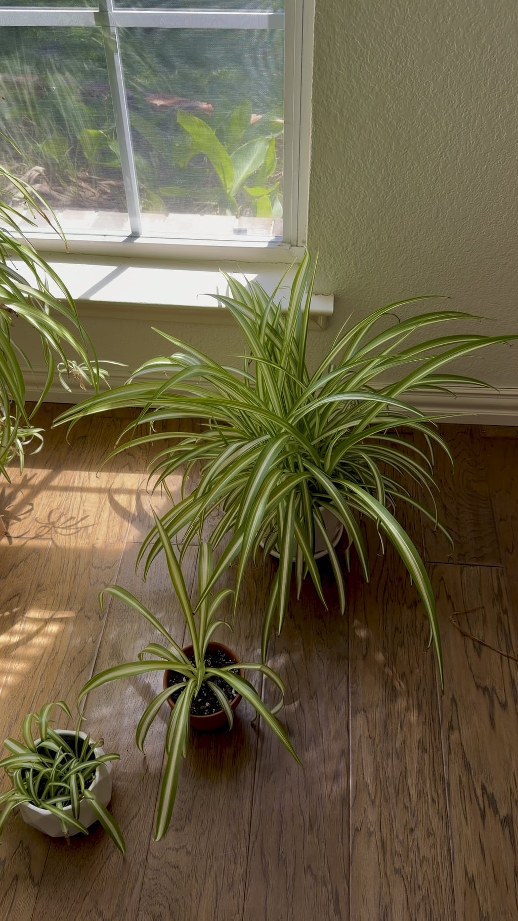 Ich warte auf die erste Runde der Spinnenpflanzen-Enkelkinder auf einigen der älteren Exemplare, die ich vermehrt habe. Mittlerweile gibt es bis zu 9 Töpfe davon, wobei in jedem Zimmer ein Paar steht!