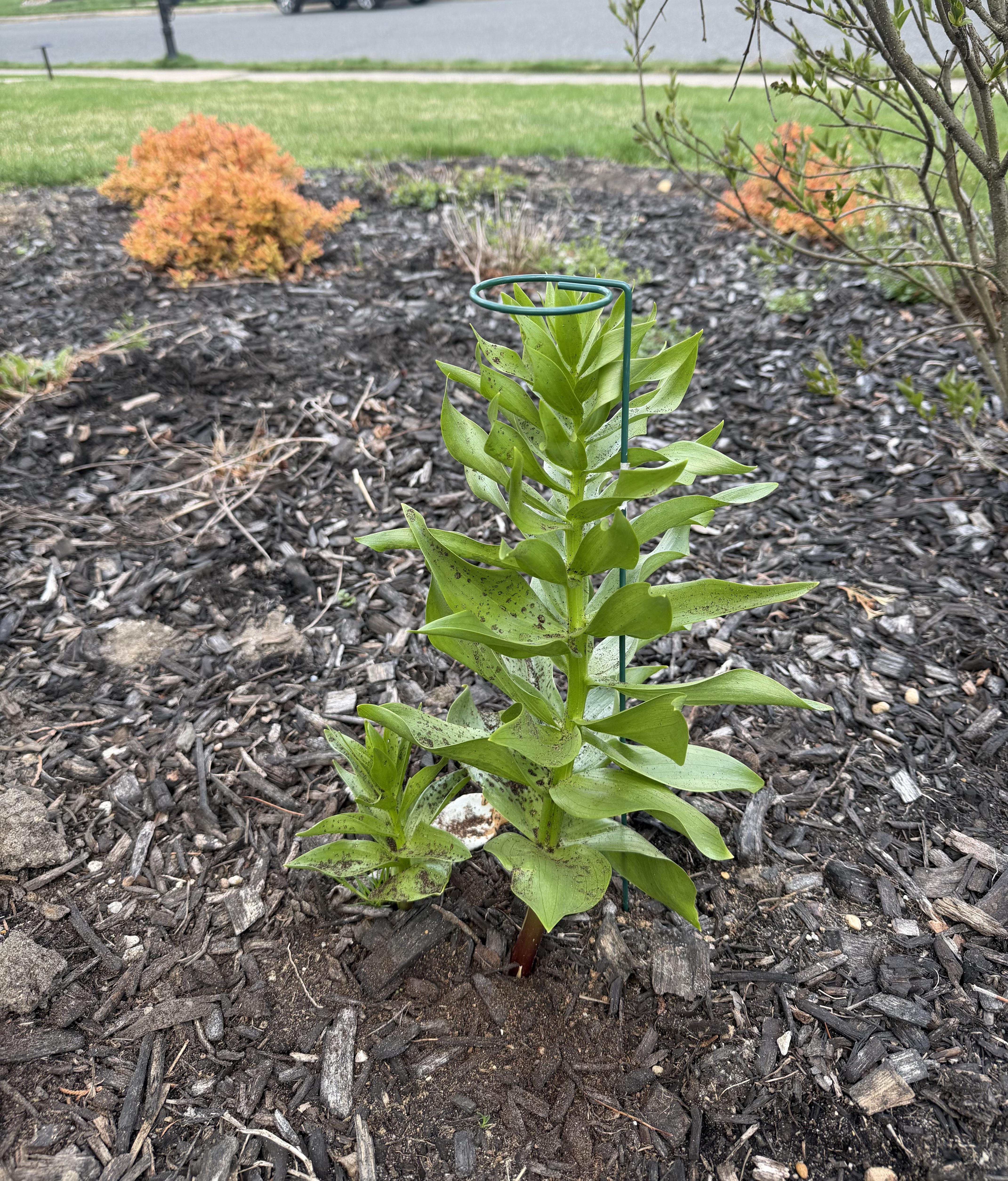 Ignorieren Sie den Schmutz auf und um die Pflanze herum, ich habe ihn mit etwas Hirschgras bestreut. Ich habe einen riesigen Hirschbestand und habe ehrlich gesagt Angst, dass sie das essen, bevor es blühen kann.