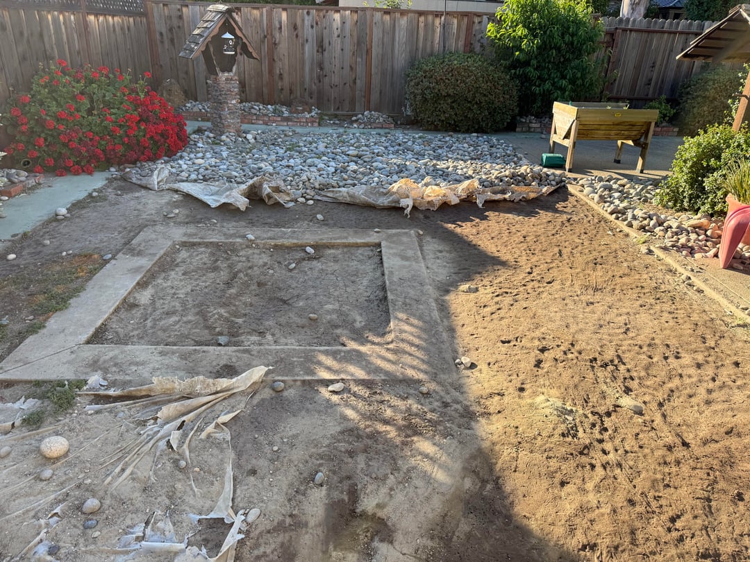 Hallo, das ist alles ein Projekt, das ich schon seit einiger Zeit aufgeschoben habe. Wir haben einen Hinterhof, der zu einem großen Teil mit Steinen des Vorbesitzers gefüllt ist.