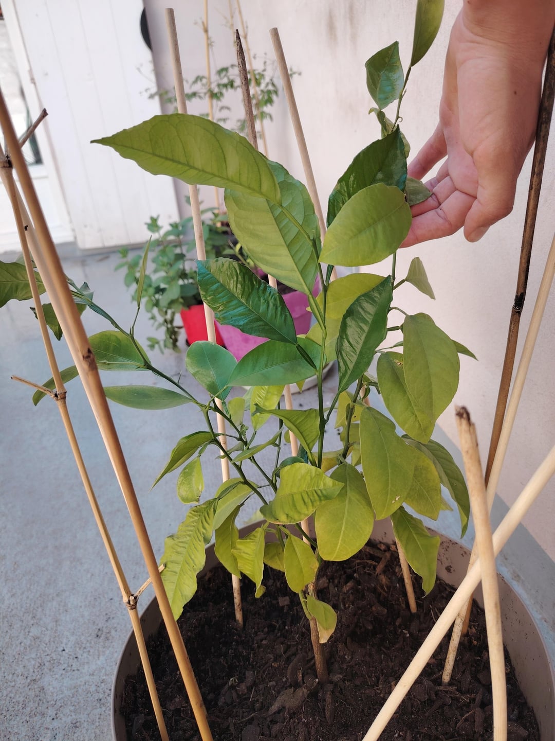 Ich habe einen kleinen Zitrusbaum und ein Geißblatt, über die ich mich wundere.