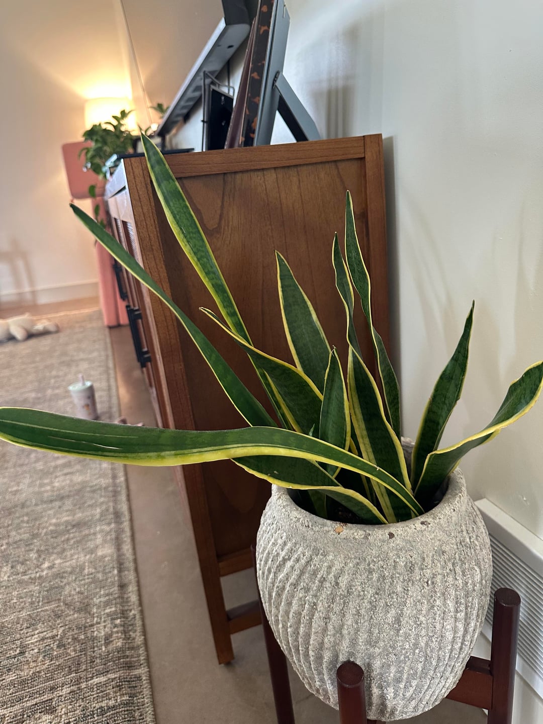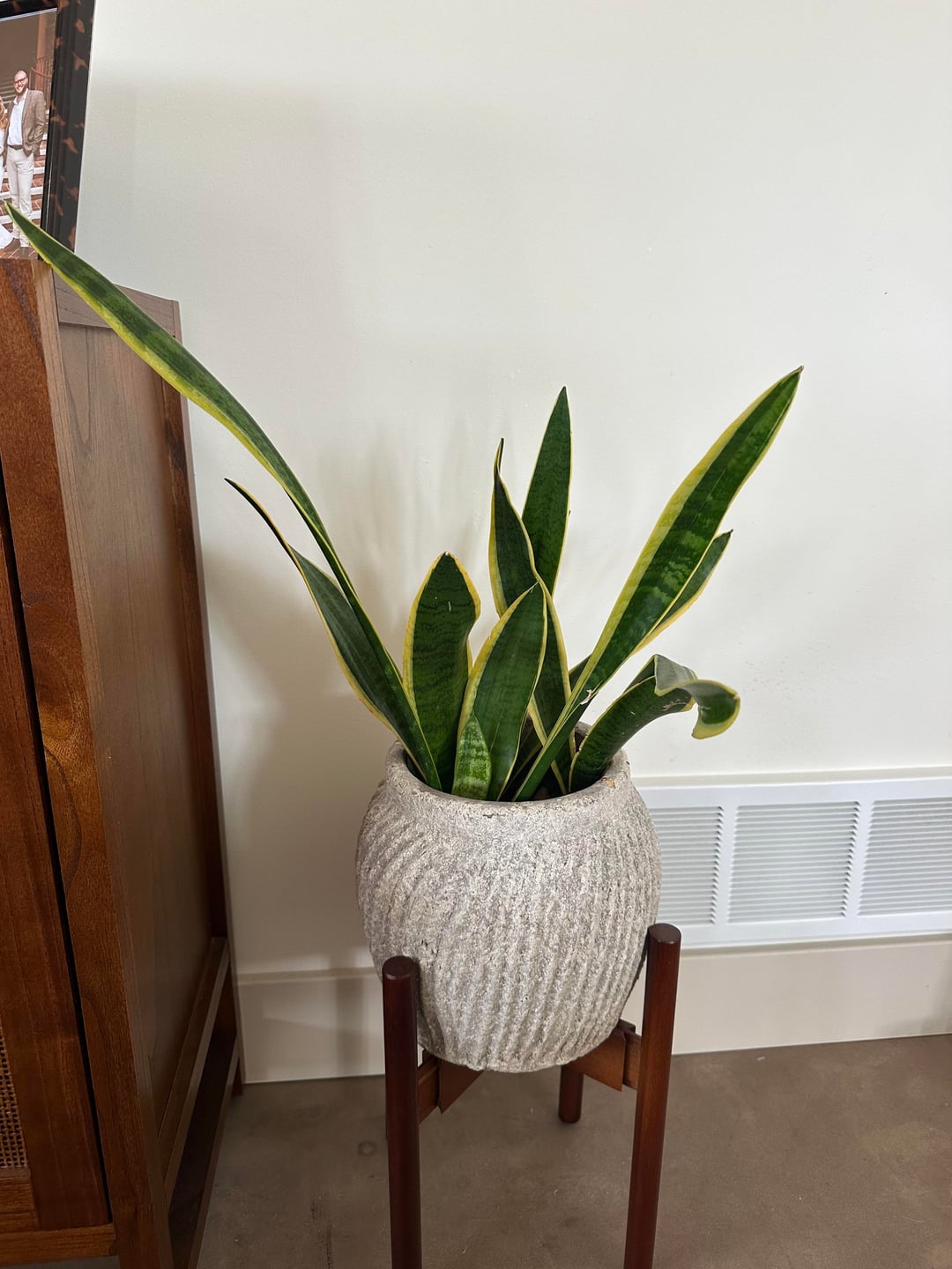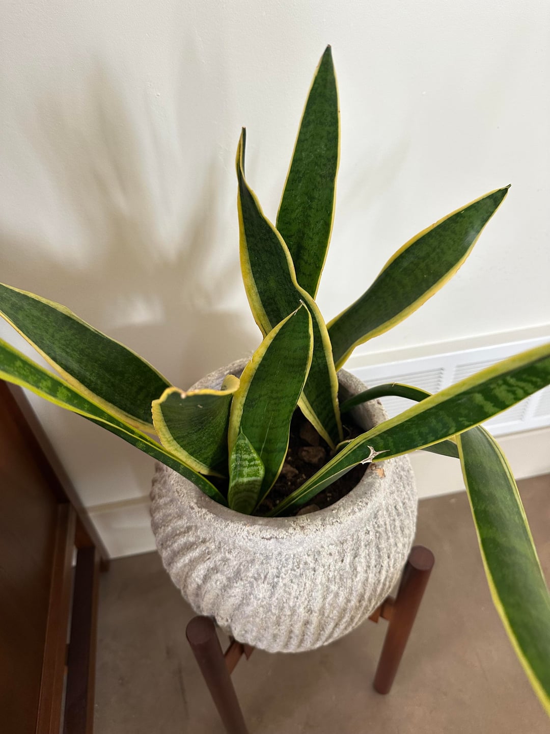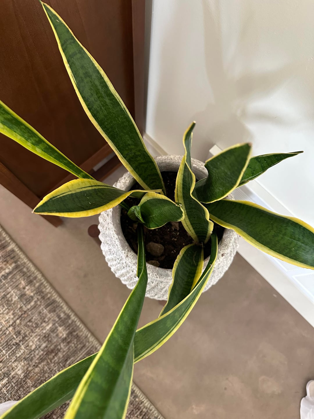 Ich habe diese Schlange seit etwa 4 Jahren. Es scheint, als würden Teile davon stark wachsen, andere überhaupt nicht? Es schlägt gerade ein neues Kapitel auf. Soll ich die dünnen, hohen „Blätter“ loswerden? Wie kann ich ihm zum Gedeihen verhelfen?