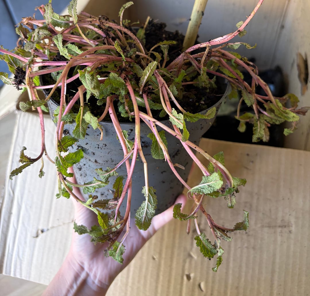 Jedenfalls habe ich sie heute gleich gepflanzt, um ihnen die besten Chancen zu geben. Am schlimmsten sind diese von Salvia Caradonna. Ich habe sechs davon und vier sehen besonders schlecht aus. Um ehrlich zu sein, sehen sie für mich nicht einmal sehr nach Salvia aus und Google identifiziert sie als Taubnessel 😂 Ich denke, die rosafarbenen Stängel deuten auf Stress hin.