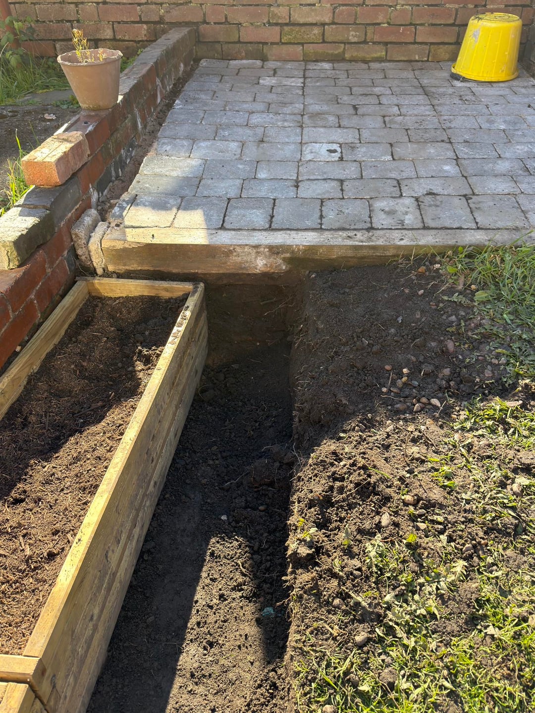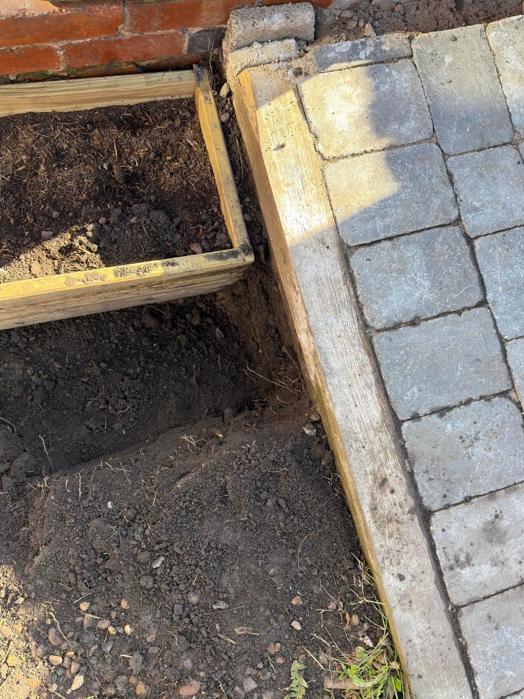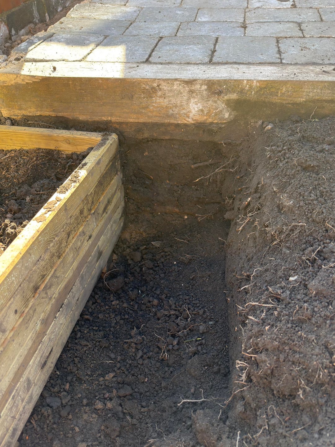 Ich bin gerade dabei, meinen Garten einzuebnen. Allerdings ist der Höhenunterschied zwischen der Terrasse und der Höhe des Grases ziemlich groß, und ich bin mir bewusst, dass es an der Stelle, an der sich die Terrasse befindet, an Unterstützung mangelt.