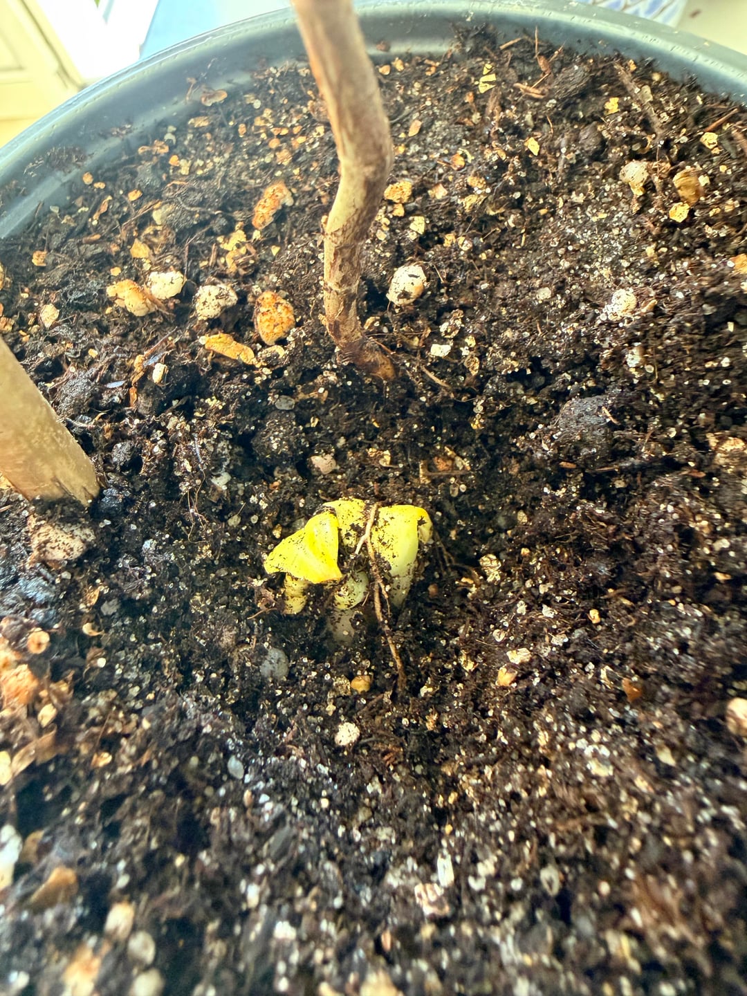 Es ist ziemlich groß und scheint tief im Inneren verwurzelt zu sein. Als ich sie vor 10 Tagen umgetopft habe, war sie noch nicht da. Habt ihr eine Idee, was es ist und was ich tun soll?