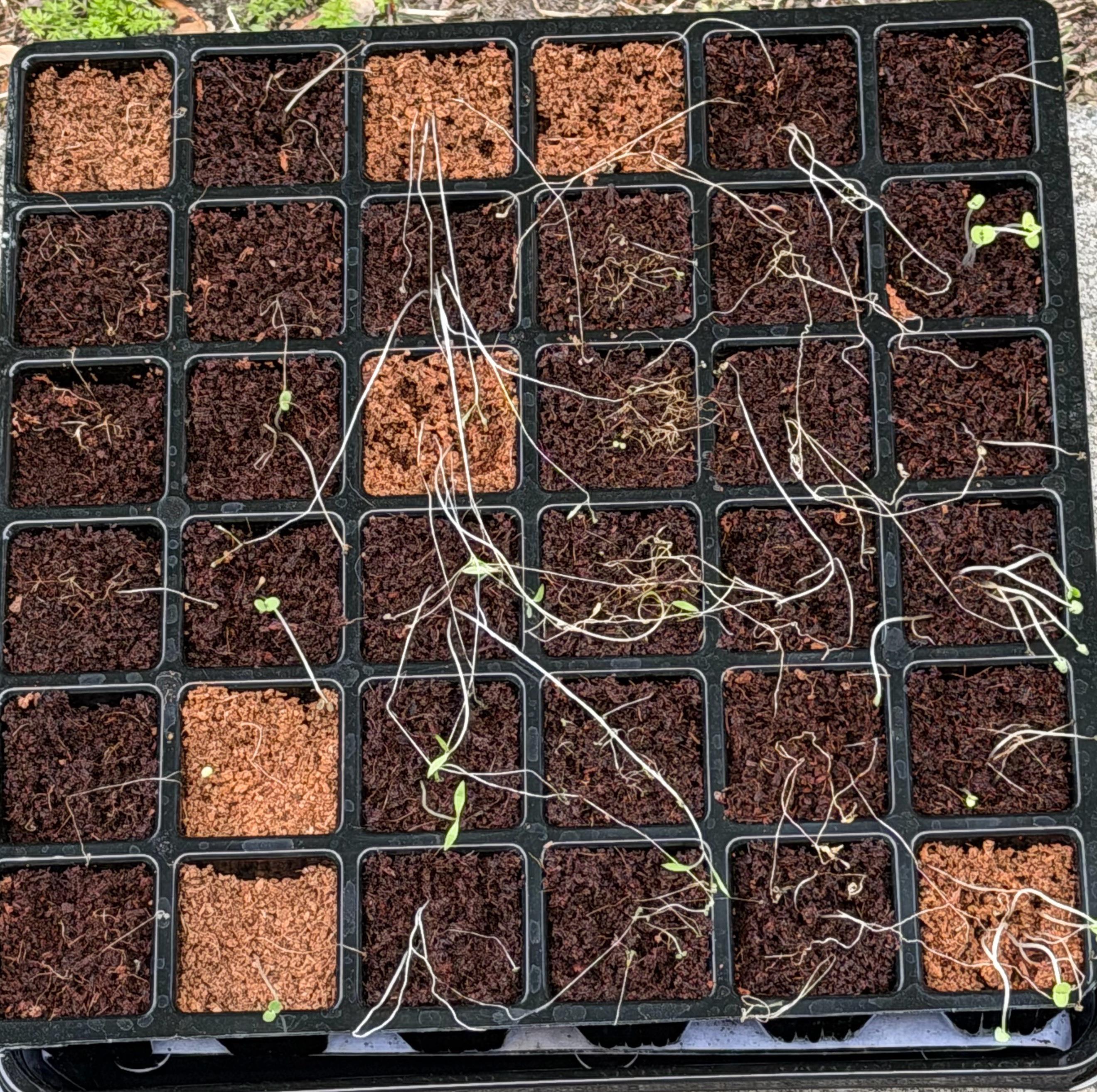 Ich habe diese vor etwa 3–4 Wochen gepflanzt, aber sie wurden drinnen ohne Wachstumslicht oder viel direktes Sonnenlicht gehalten. Es ging ihnen nicht besonders gut, deshalb habe ich in den letzten Tagen damit begonnen, sie nach draußen zu bringen, um zu versuchen, sie zurückzubringen.