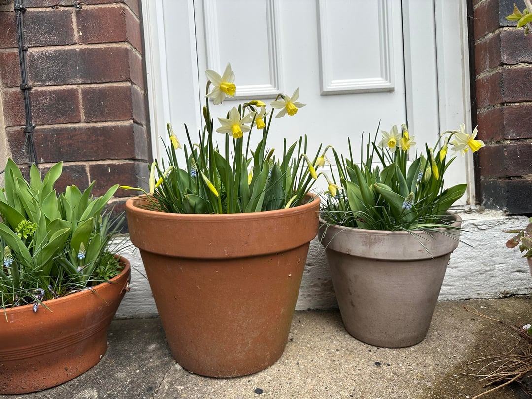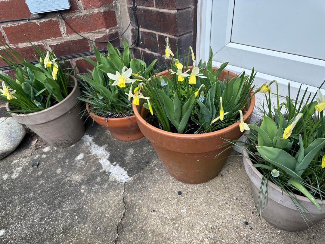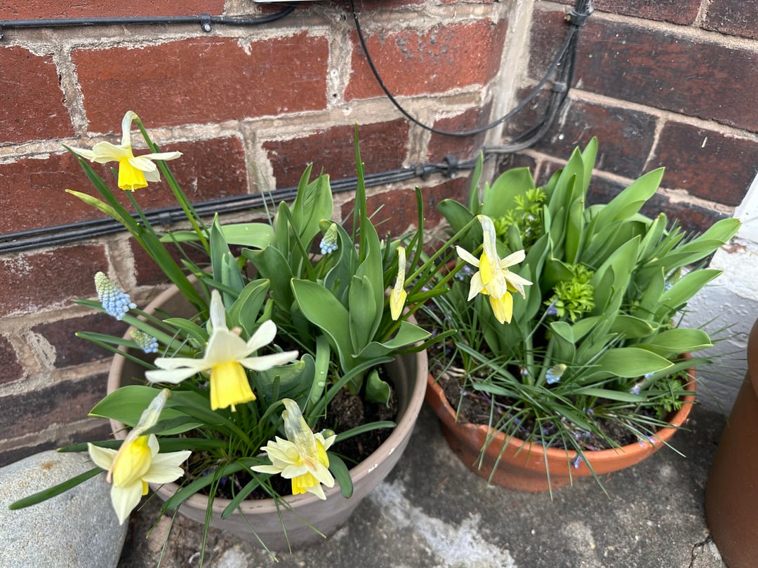 Wunderschöne kleine Paperwhites und dieser wunderschöne hellblaue Muscari machen meine Türschwelle fröhlich Tulpen brauen! Von: ActualCartoonist7192
