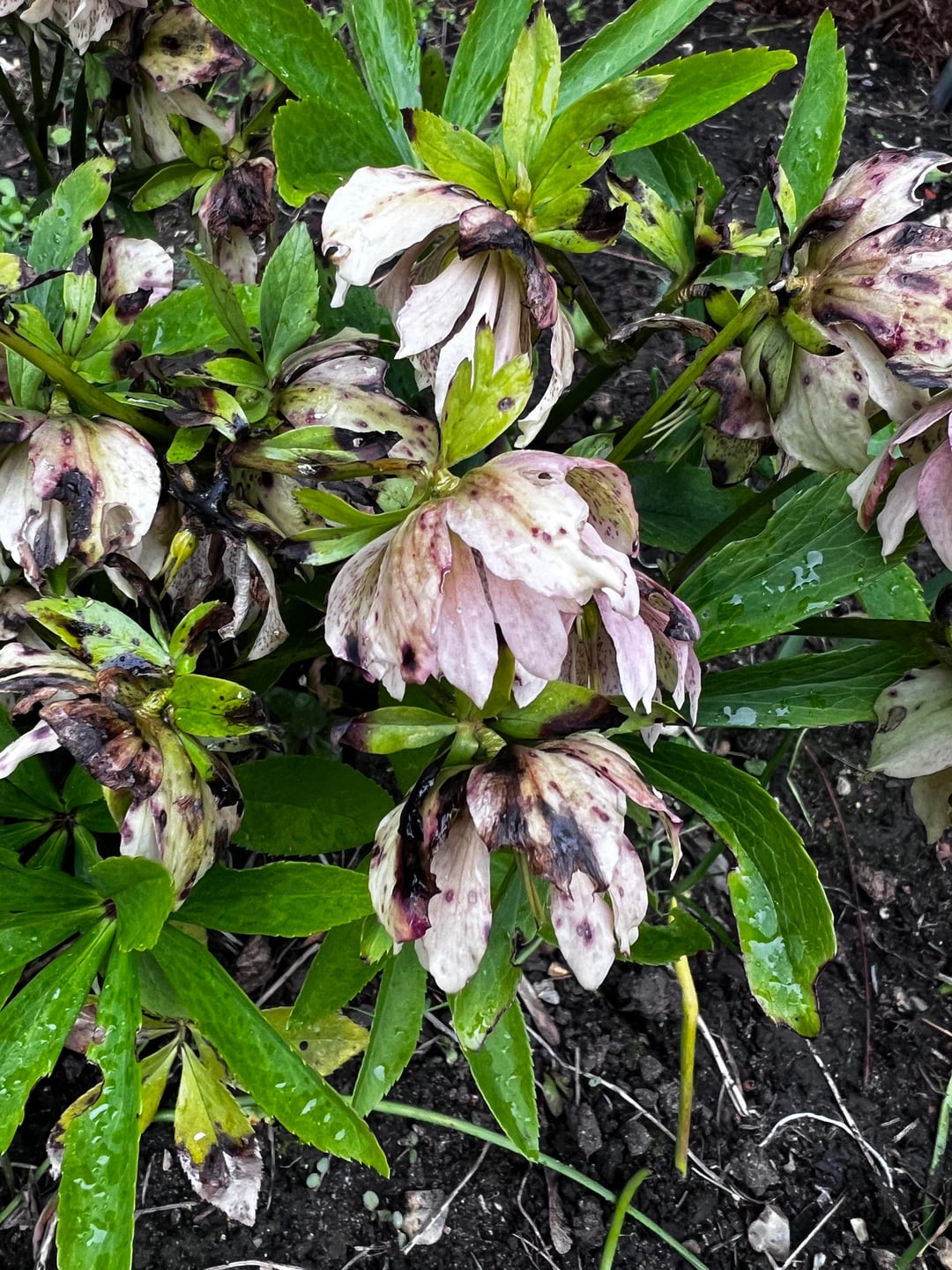 Diese Nieswurz in meinem Garten sieht schrecklich aus. Handelt es sich um eine bestimmte Krankheit und kann ich etwas dagegen tun? Es ist derzeit in meinem Vorgarten gepflanzt, der sonnig ist. Würde es widerstandsfähiger sein, es an einen schattigen Ort zu bringen? Ich habe noch andere Nieswurzarten in meinem Vorgarten und allen geht es großartig.