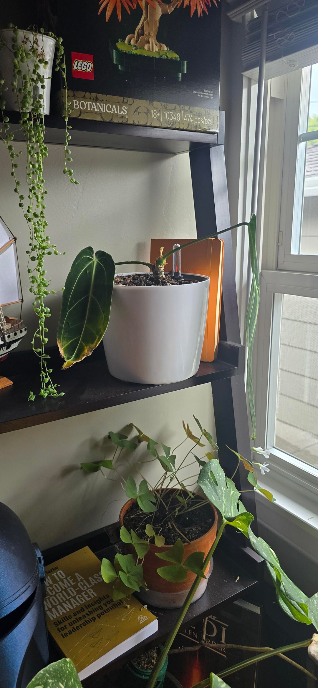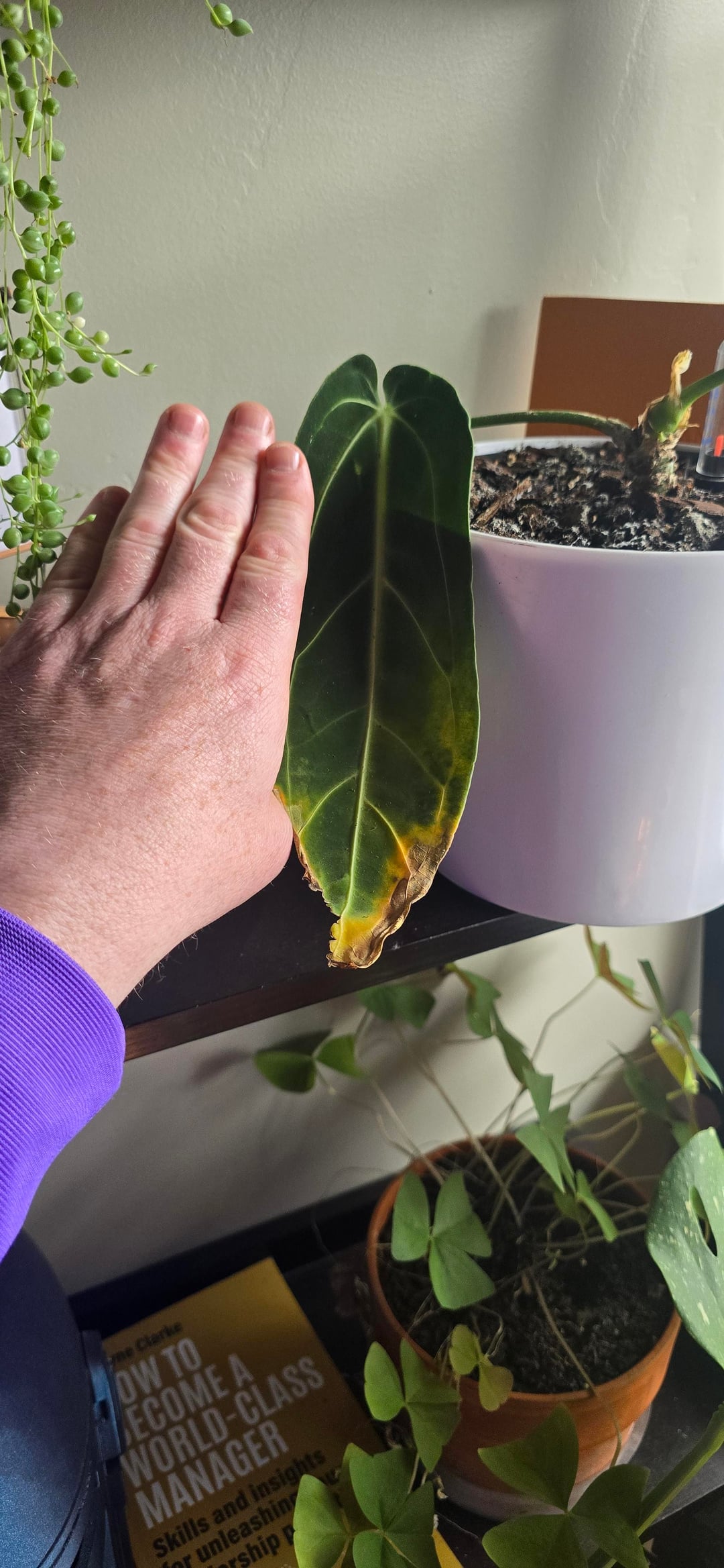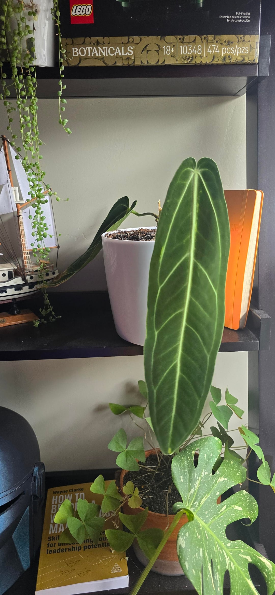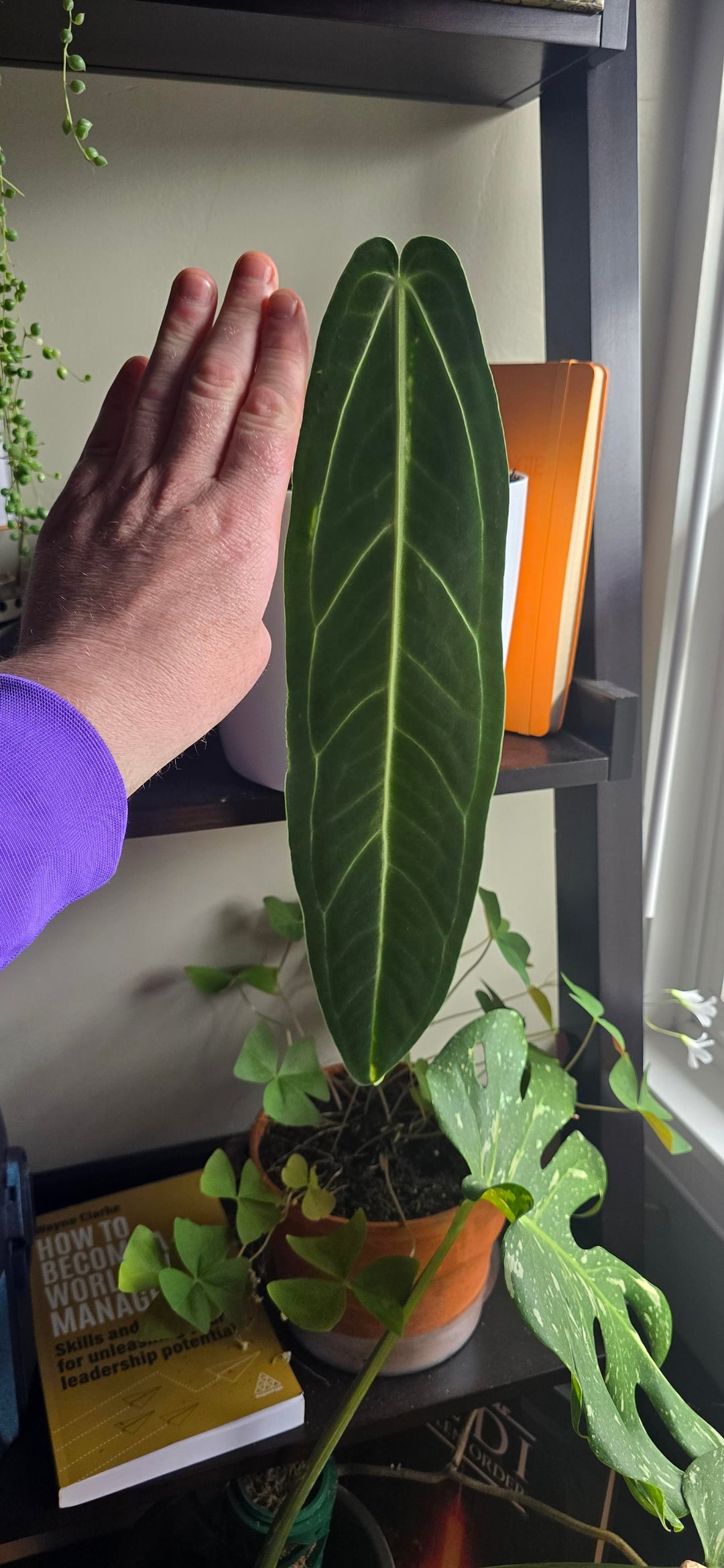 In den letzten 8 Monaten saß sie nur wütend da und ließ alle Blätter bis auf ein Blatt fallen. Ich beschloss, sie in einen größeren selbstbewässernden Topf mit einem anderen Medium zu verpflanzen, und sie begann sofort, neue Wurzeln auszutreiben, und dann blühte sie auf! Ich kann es kaum erwarten, das nächste Blatt zu sehen.