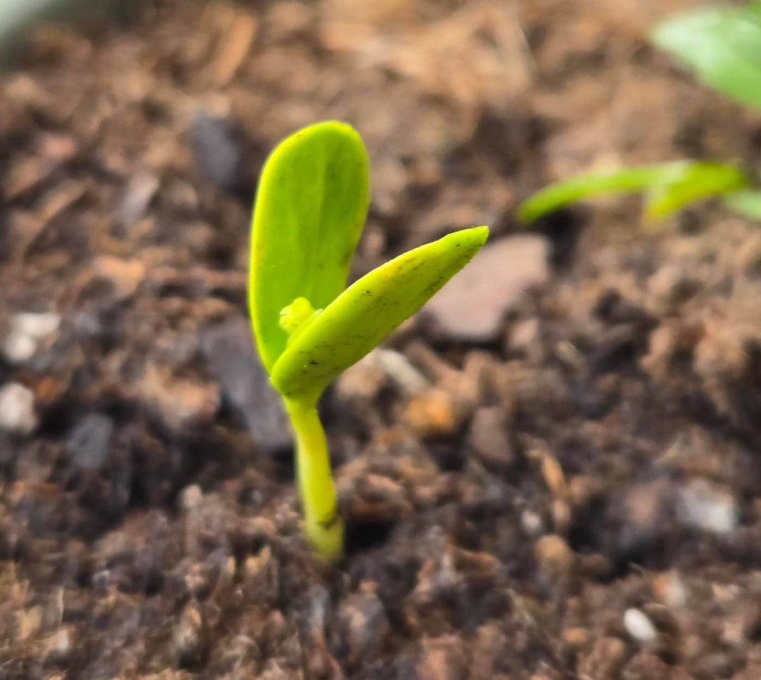 Ich habe keine Ahnung, was es ist, aber ich frage mich, ob es eine Erdnusspflanze ist? Ich weiß, dass es sehr jung ist, aber die Keimblätter haben sich geöffnet und ich fragte Planty (die Sache mit der Chat-GPT-Pflanze) und sie sagte, es sei wahrscheinlich eine Art Bohne.